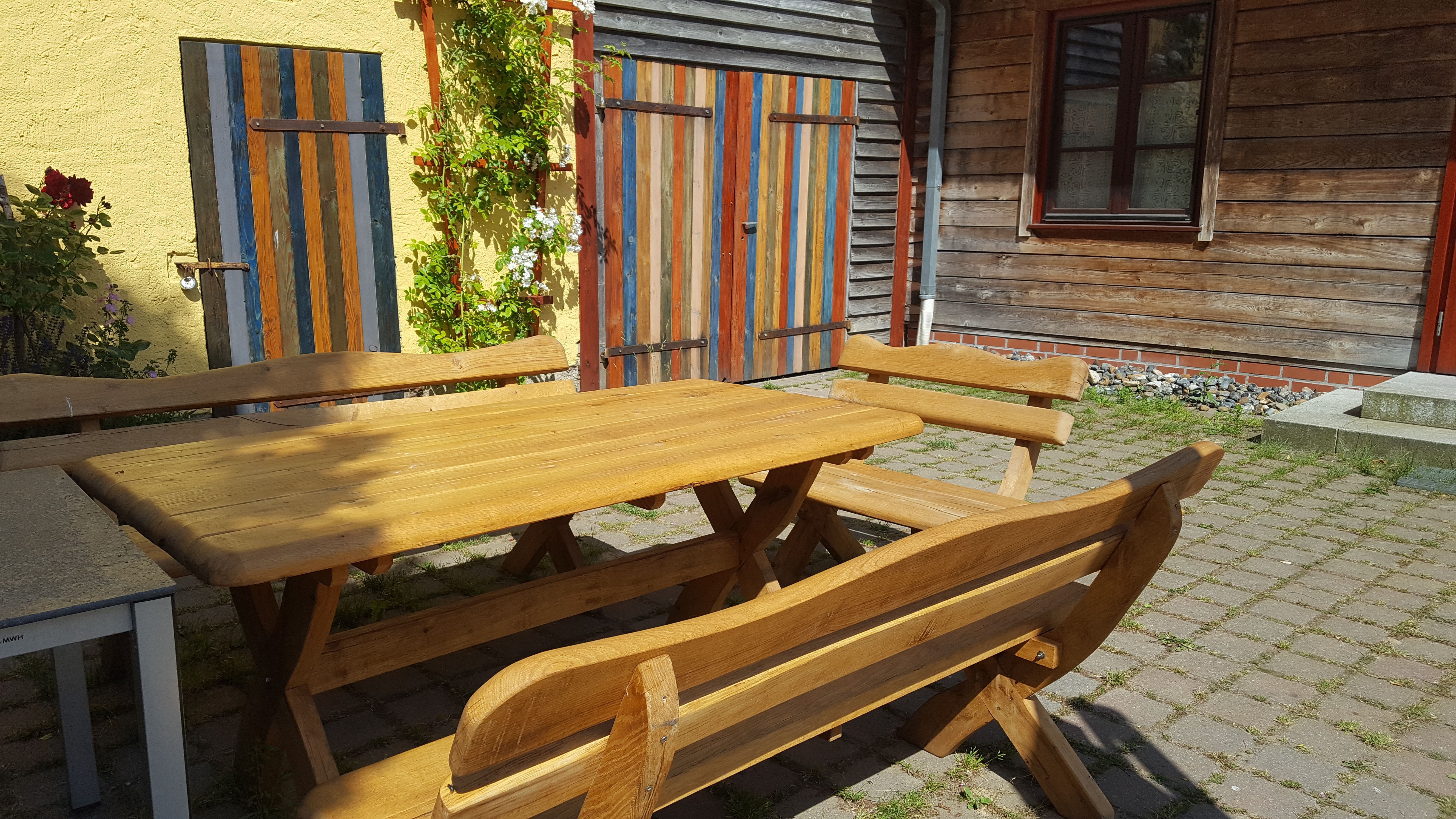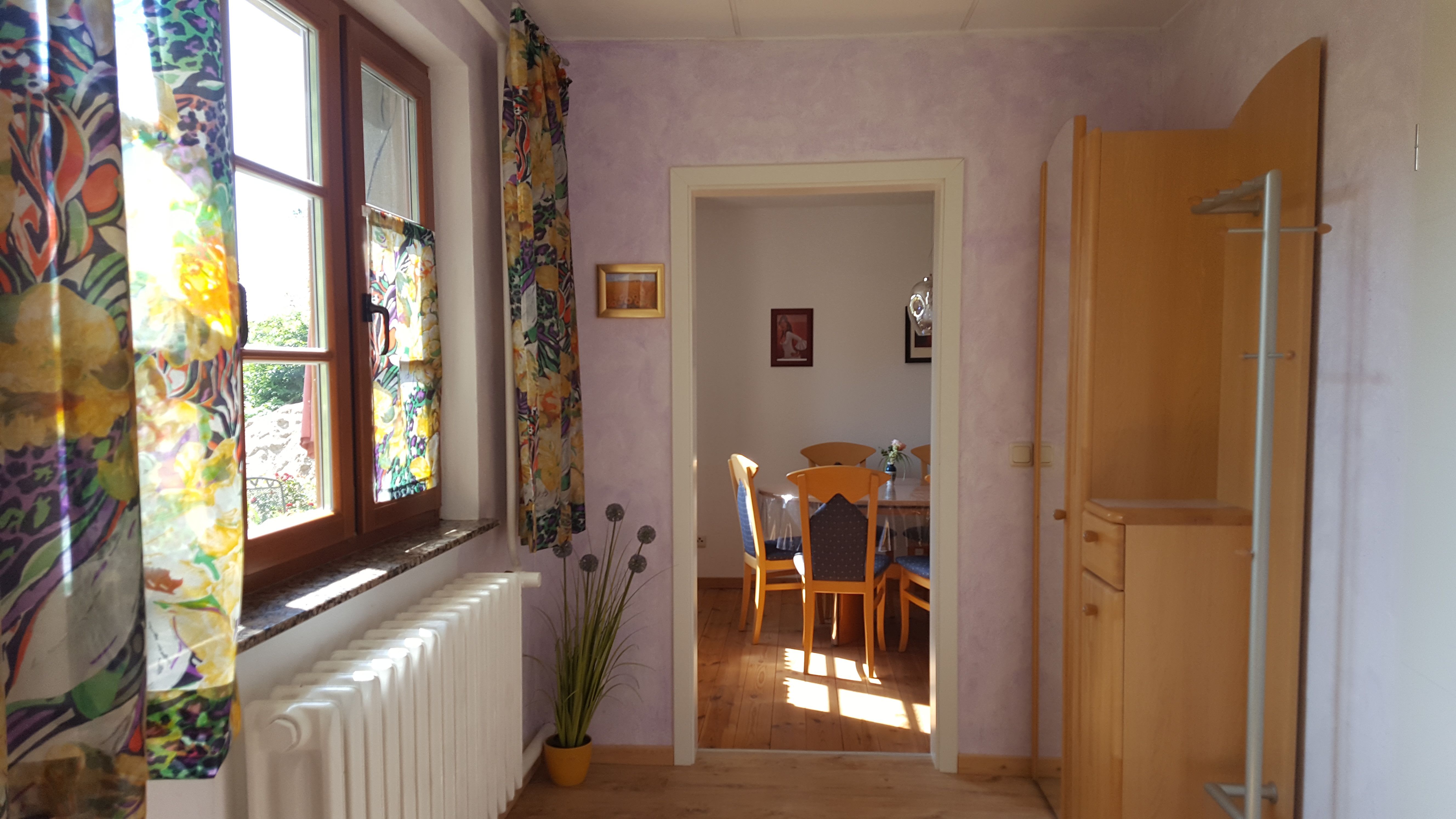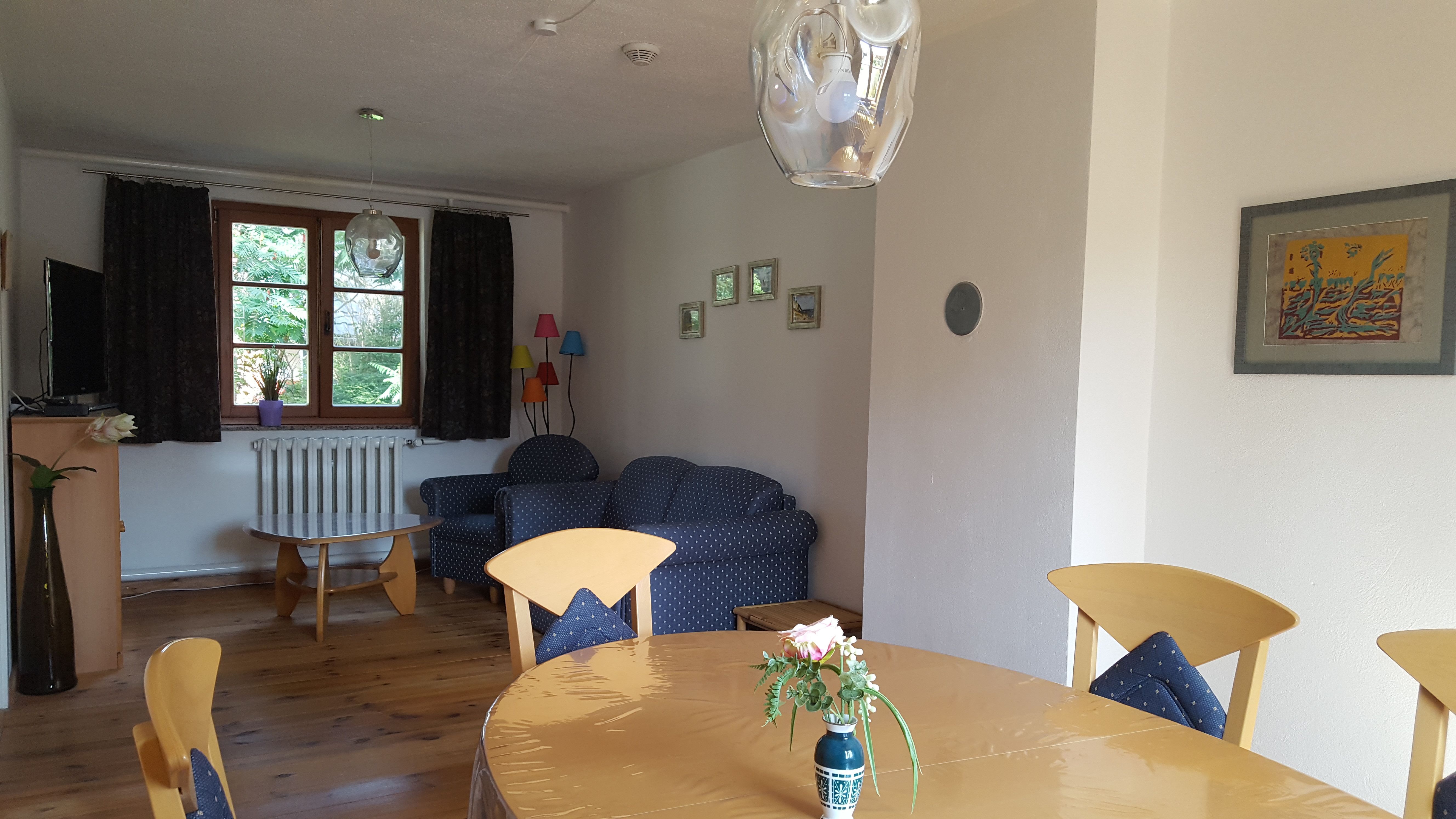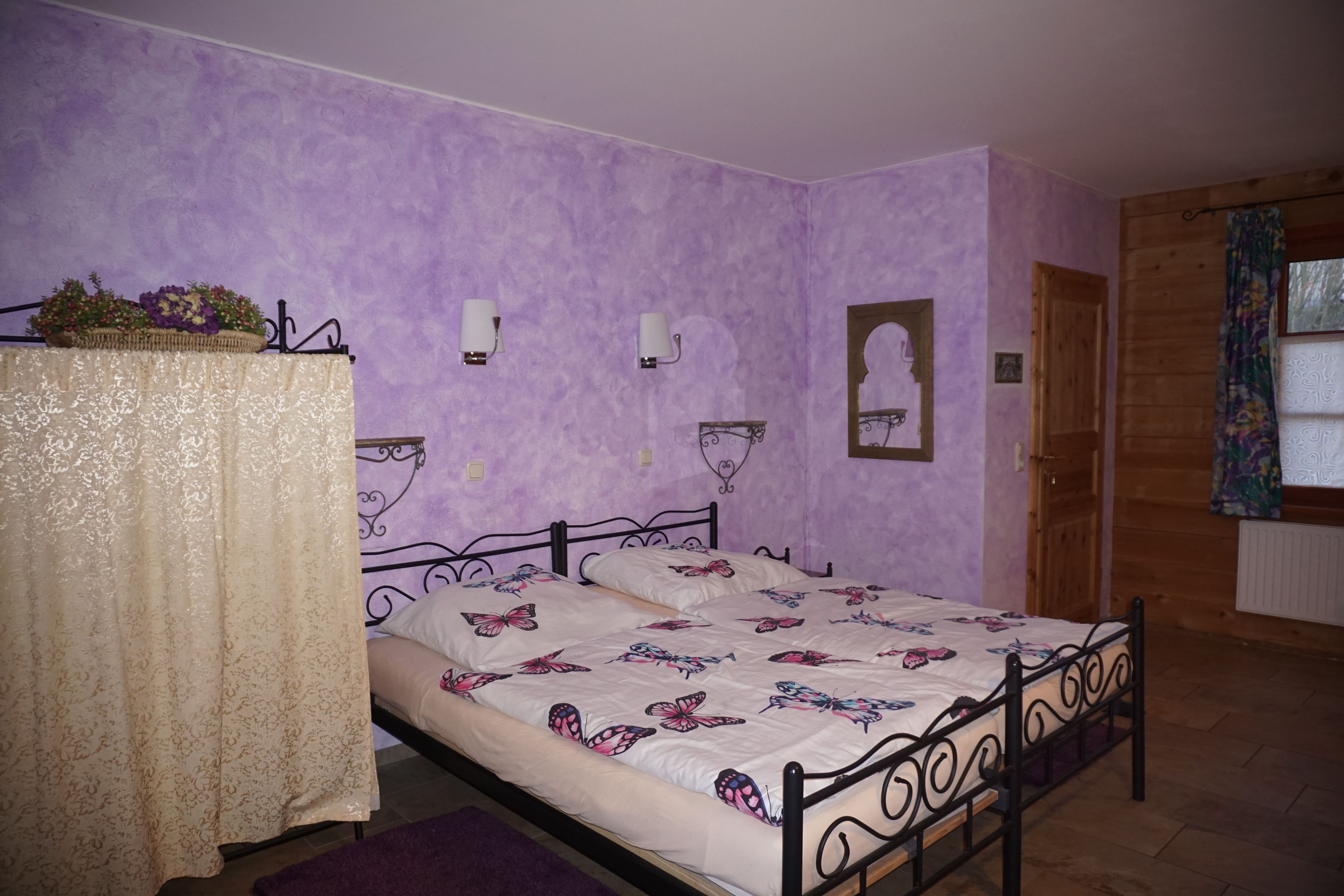 Das Zweibettzimmer befindet sich im Kleinen Steinhaus (Baujahr 1995; Komplettsanierung 2022) und ist ganz individuell mit Holzmöbeln ausgestattet. Zwei Fenster zum Hof geben Ausblick auf einen ehemaligen Bauernhof. Es ist ausgestattet mit TV, Bettwäsche und Handtüchern. Das Bad mit Dusche und WC befindet sich in einem separaten Raum und wird gegebenenfalls mit einem Gast in einem Einzelzimmer gemeinsam genutzt. Die Küche wird von allen Gästen genutzt. Ein Reisekinderbett (10,- Euro) und ein Kinderhochstuhl (3,- Euro) wird Ihnen auf Anfrage zur Verfügung gestellt.