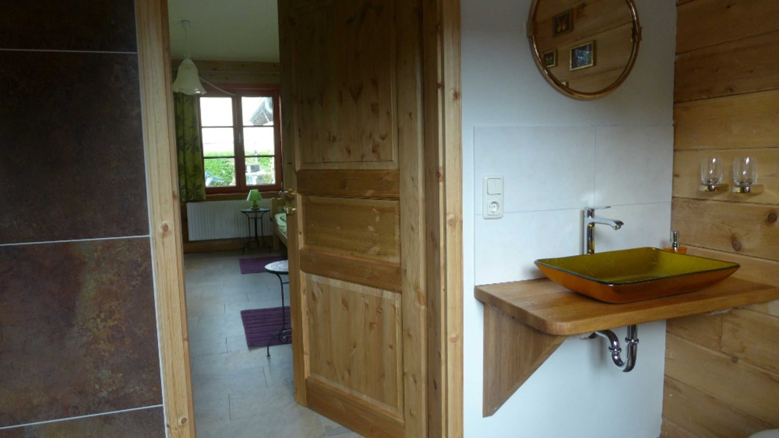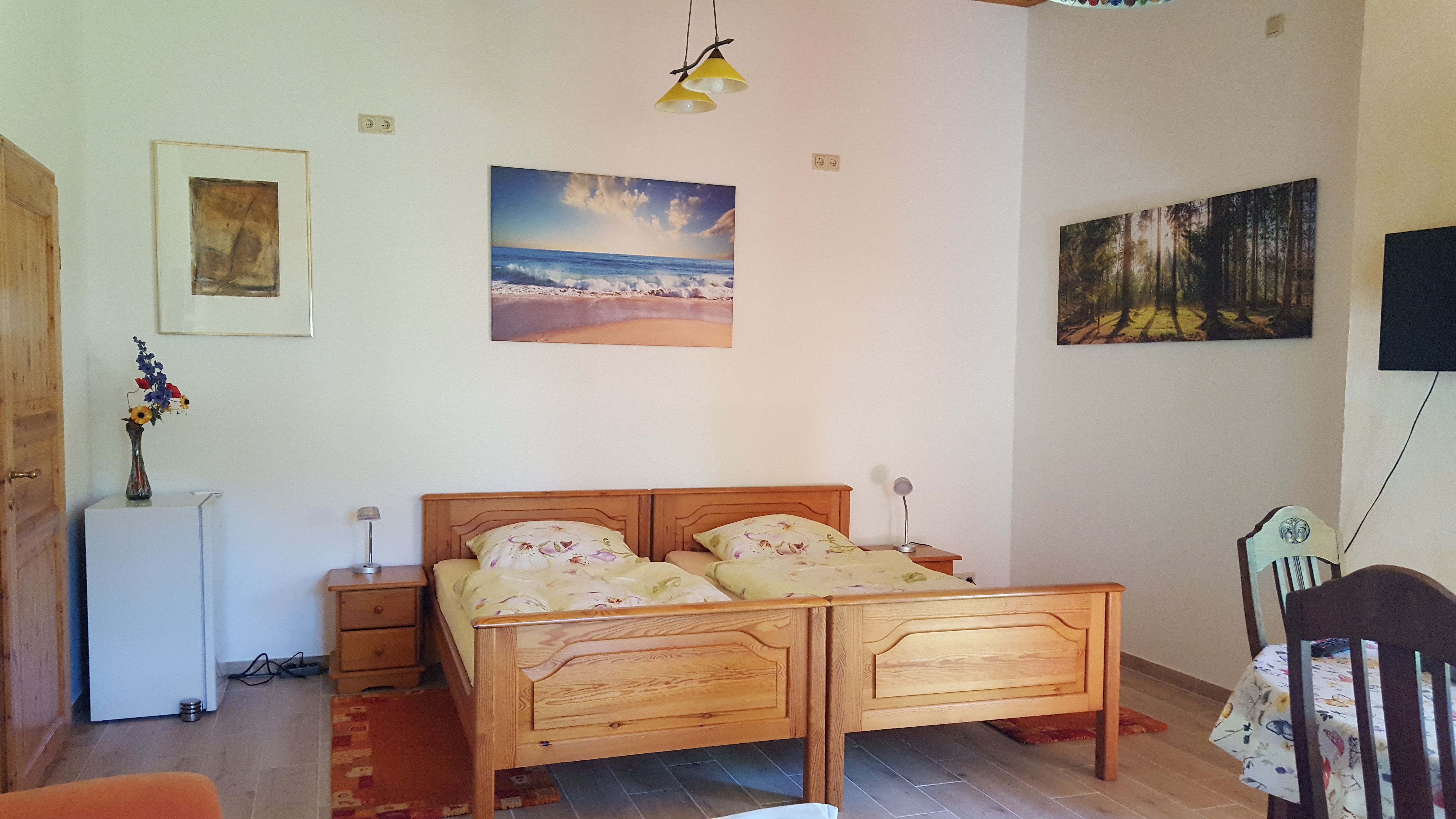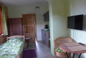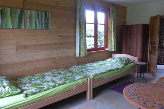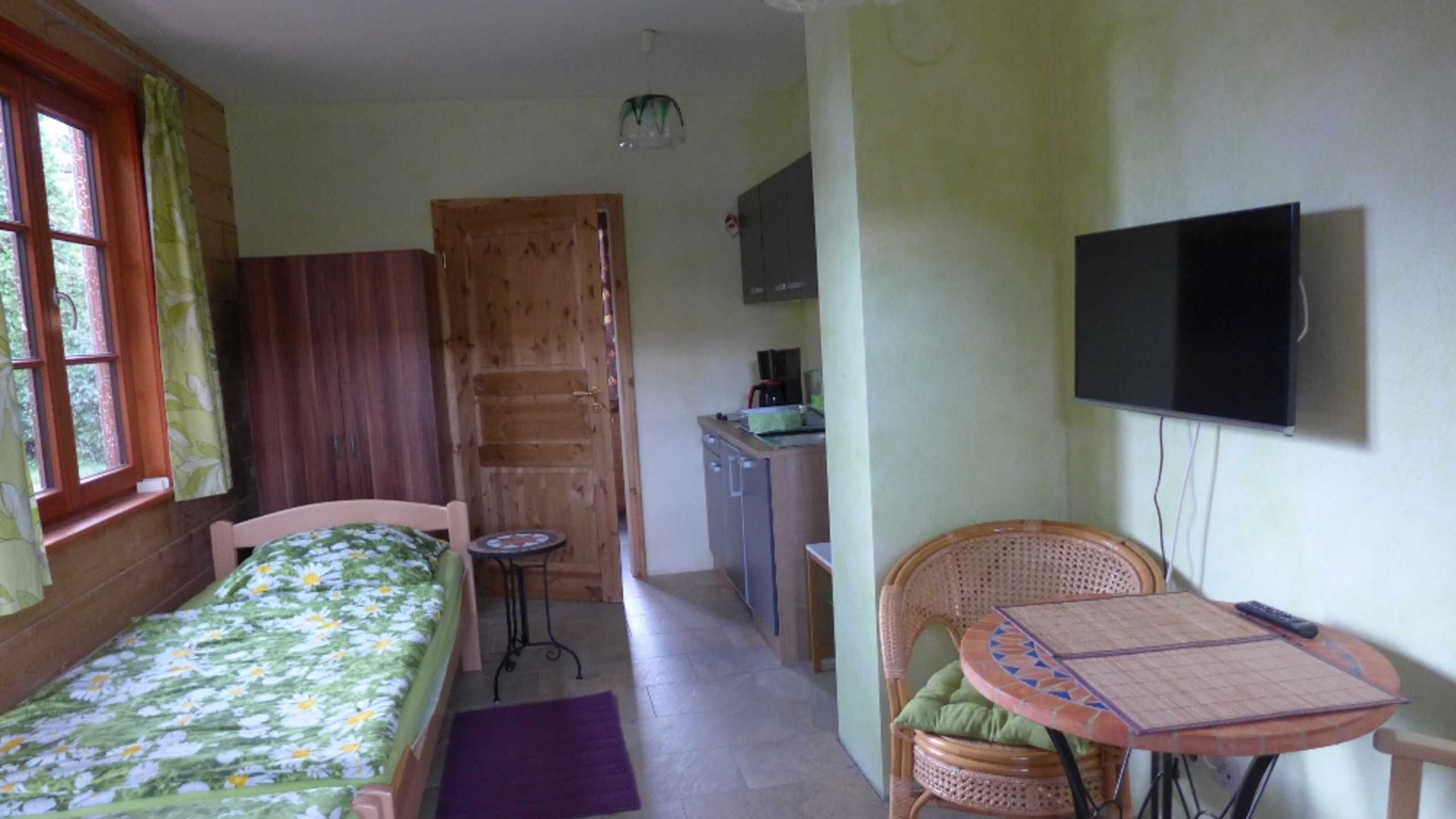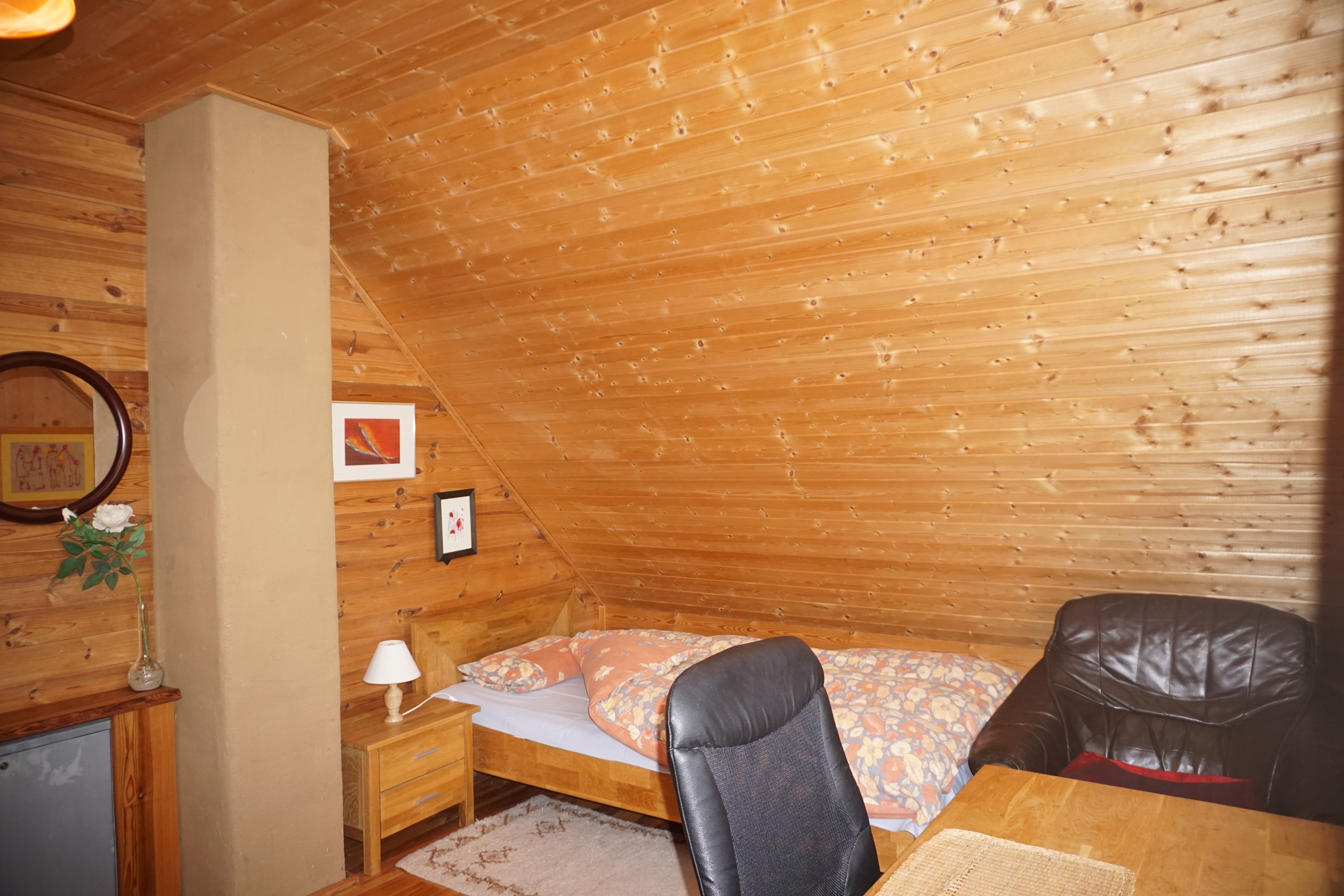Das Einbettzimmer David befindet sich im Zedernblockhaus (Baujahr 2006). Eingerichtet ist es mit einem Bett, einem Tisch, zwei Sesseln und einem Flachbildfernseher. Eine Miniküche mit Kühlschrank, 2 Cerankochfeldern, Wasserkocher, Kaffeemaschine, Toaster und Minibackofen sind integriert. Das Bad ist mit ebenerdiger Dusche und Duschvorhang, Waschtisch und WC ausgestattet.