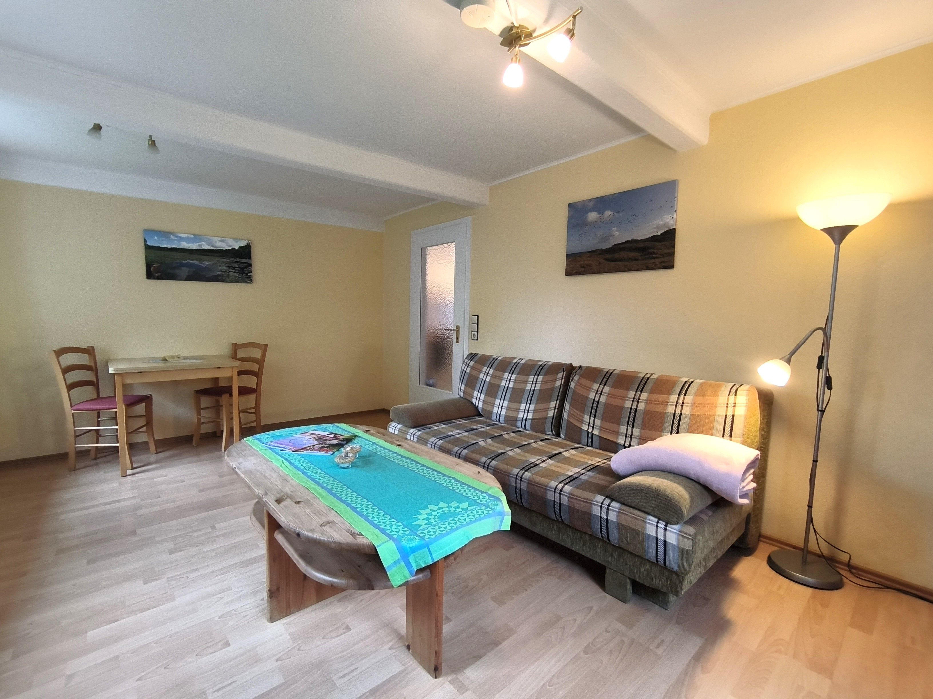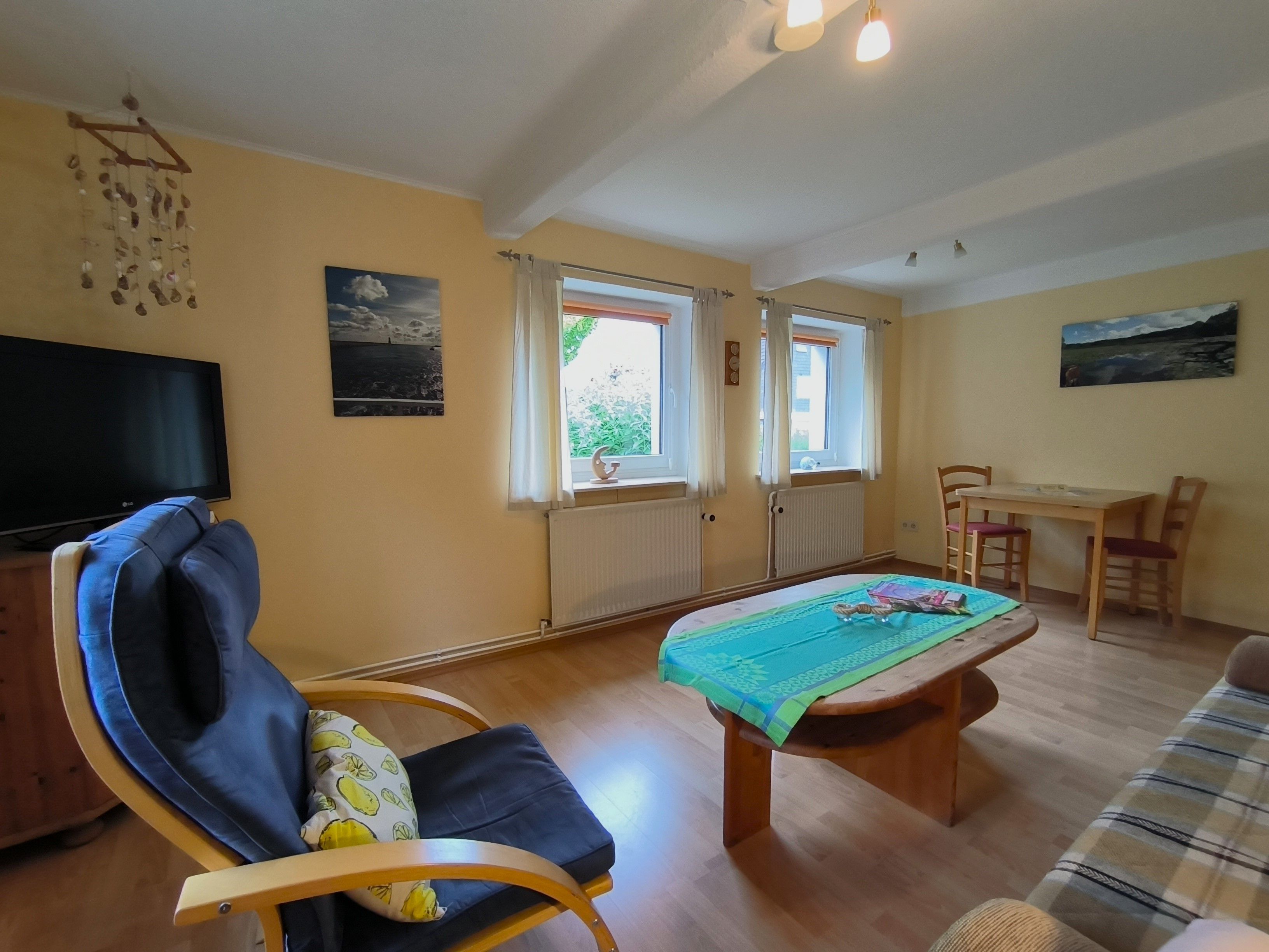 Herzlich willkommen in unserer kleinen, aber feinen und gemütlichen Ferienwohnung hoch oben im Norden Deutschlands vor den Toren der Stadt Flensburg! Die 45m² große Ferienwohnung liegt im Erdgeschoss eines Einfamilienhauses im Örtchen Jarplund und verfügt über einen separaten Eingang und einen kleinen Garten mit Gartenlaube. Die Wohnung eignet sich besonders gut für Paare oder zwei Gäste: sie hat ein Schlafzimmer mit Doppelbett, ein gemütliches Wohnzimmer mit Sofa, Tisch, Lesesessel und TV, eine gut ausgestatte Küche mit Mikrowelle sowie ein Duschbad. Bettwäsche, Handtücher und die Endreinigung sind im Preis der günstigen Wohnung bereits inklusive.
