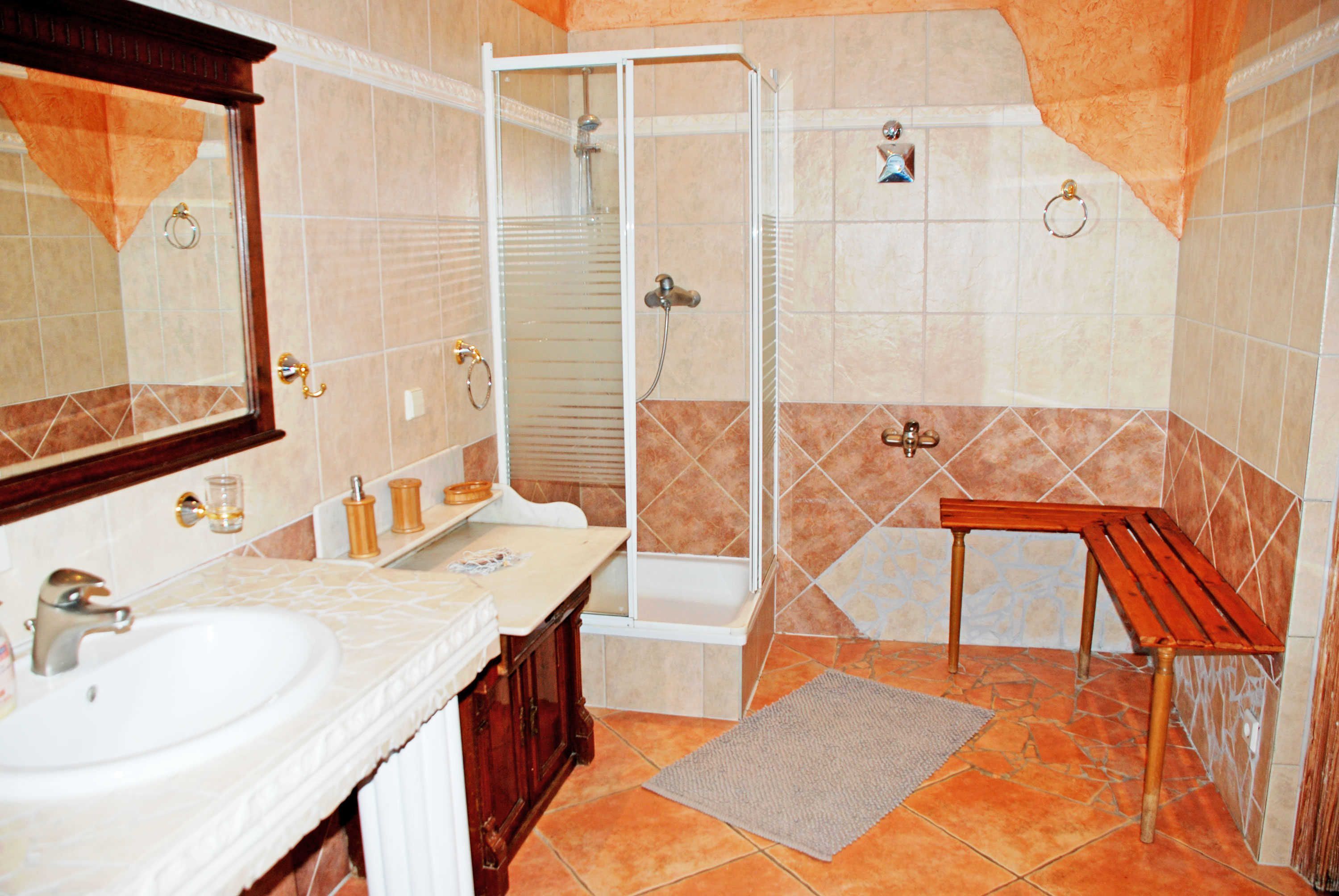 In dieser Wohnung kann bei Bedarf ein Kinderreisebett und Hochstuhl bereit gestellt werden. Das schöne Bad verfügt über Dusche, WC und Waschbecken. Zu dieser Wohnung gehört auch eine Terrasse mit Gartenmöbeln. Als besonderes Extra liefern wir Ihnen auf Wunsch jeden Morgen kostenlos frische Bäckerbrötchen. Liebe Haustiere sind bei uns ebenfalls jederzeit ohne Aufpreis in dieser Ferienwohnung willkommen.