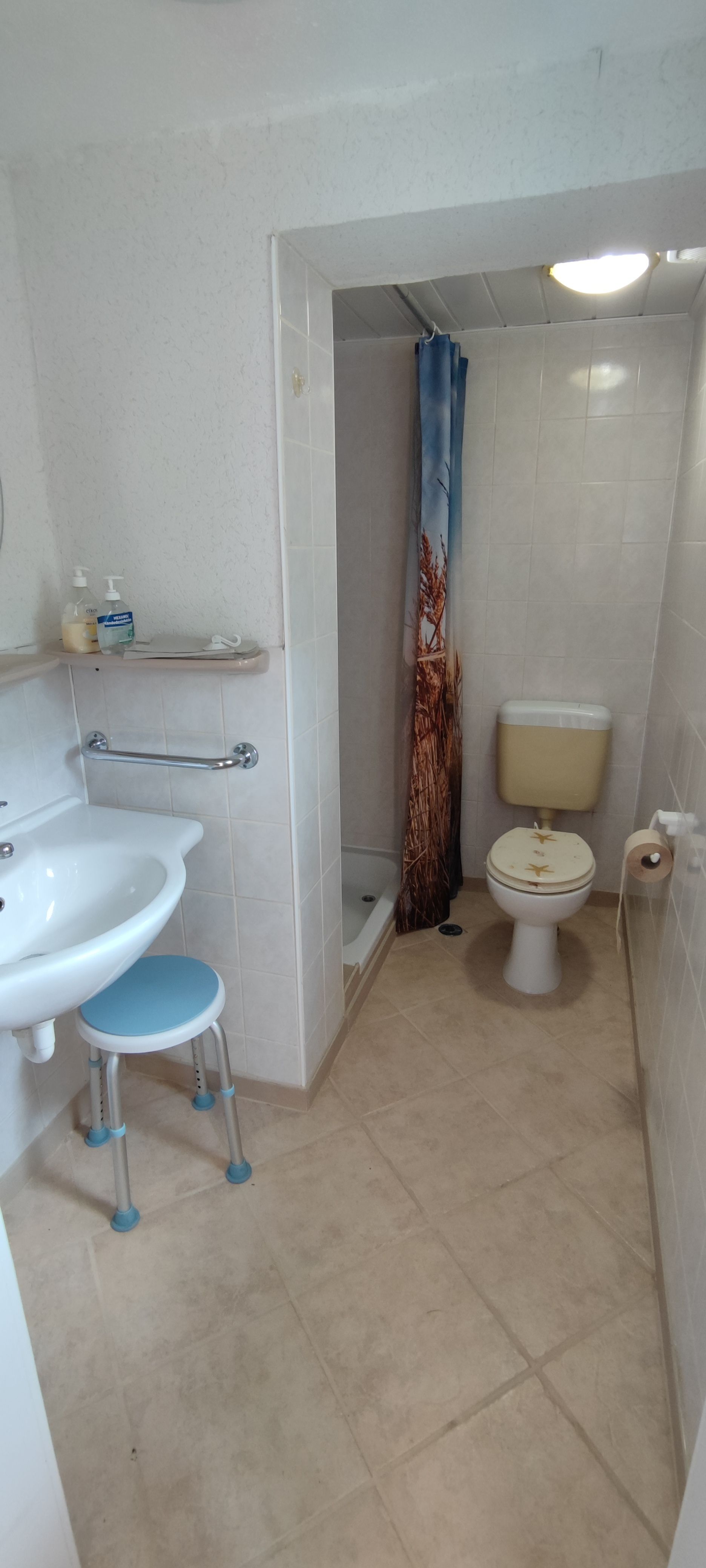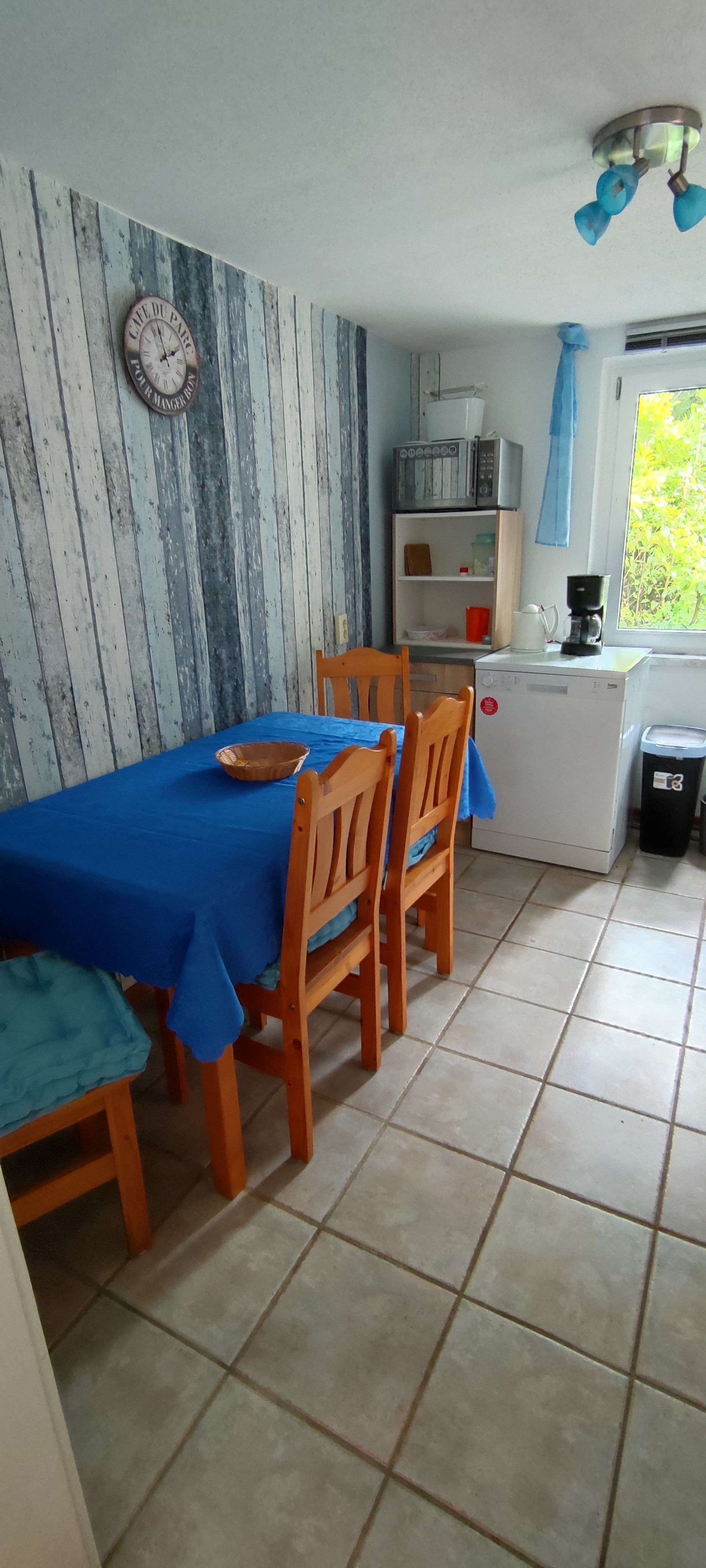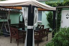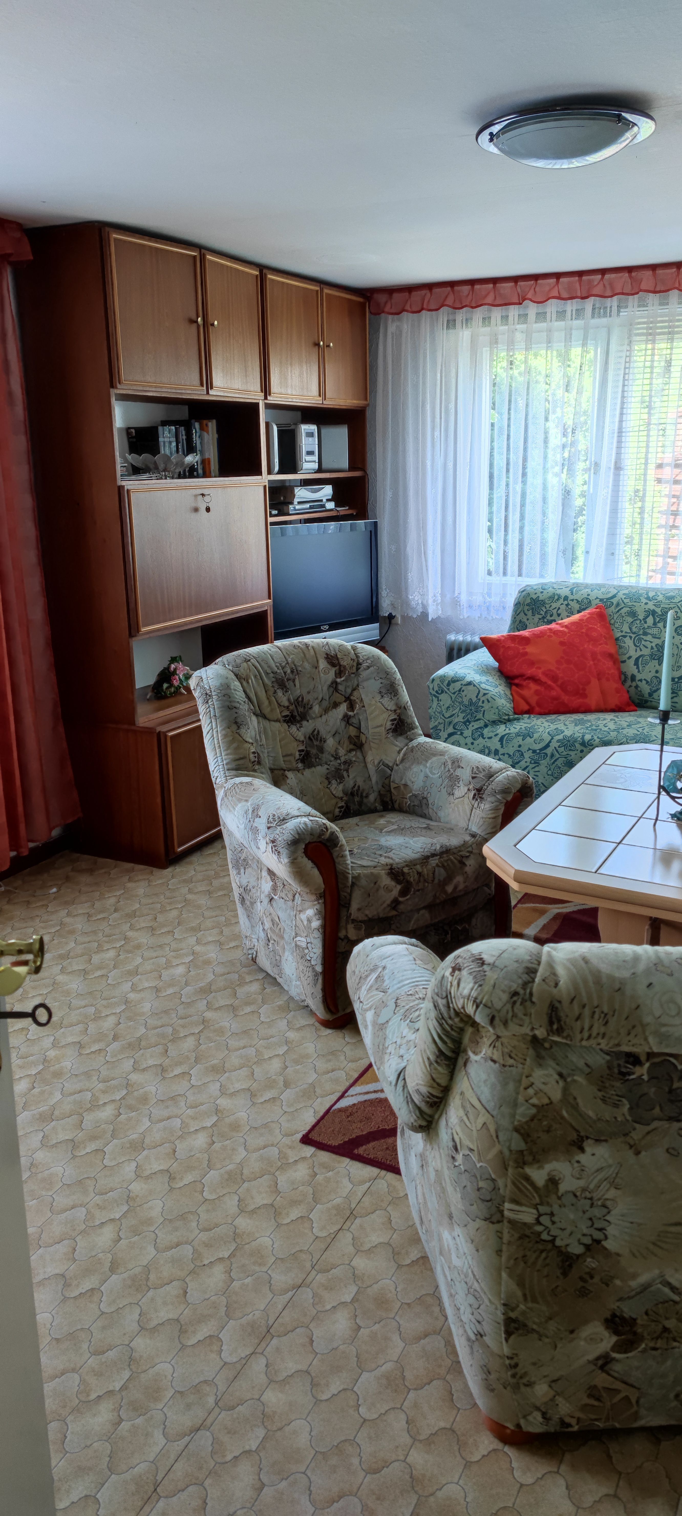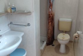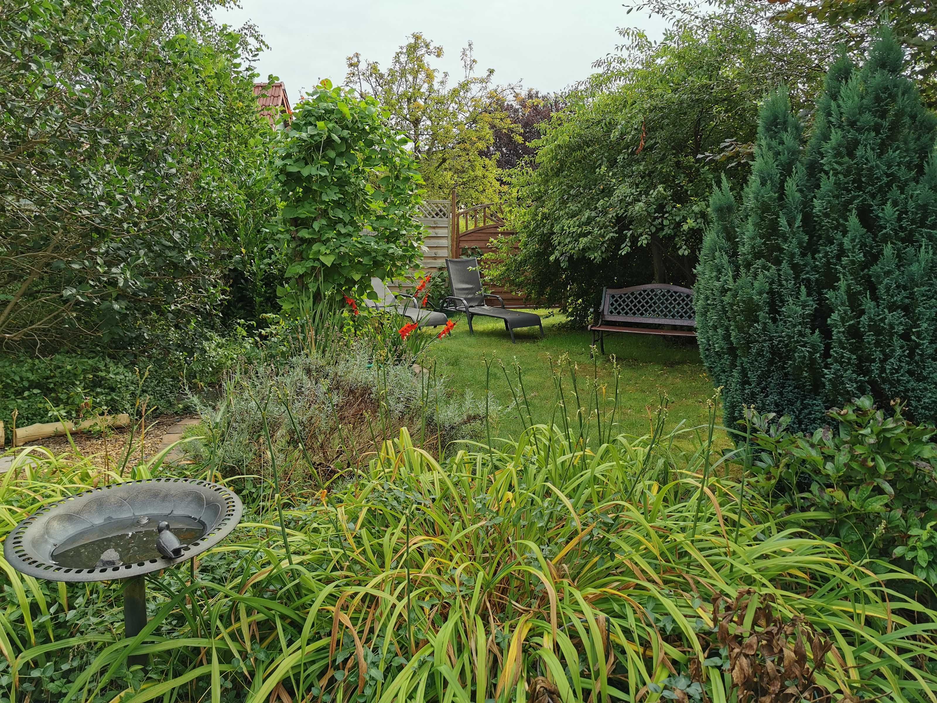 2 Schlafräume, 1 Wohnzimmer, Badezimmer mit Dusche. Das Ferienhaus befindet sich im Garten des Grundstück.