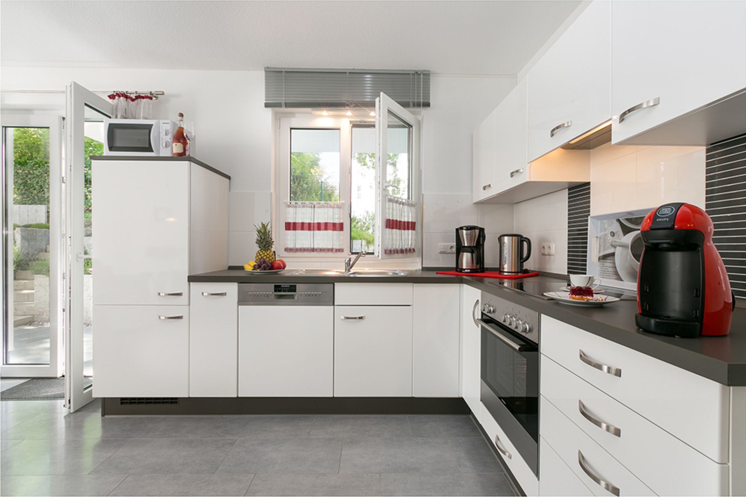Küche mit Cerankochfeld, Geschirrspüler, Espressomaschine,