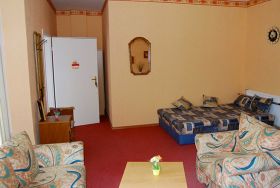 Neben dem im Schlafzimmer befindlichen Doppelbett gibt die Schlafcouch im Wohnzimmer die Möglichkeit einer Aufbettung. So können bis zu 4 Personen im Apartment übernachten.