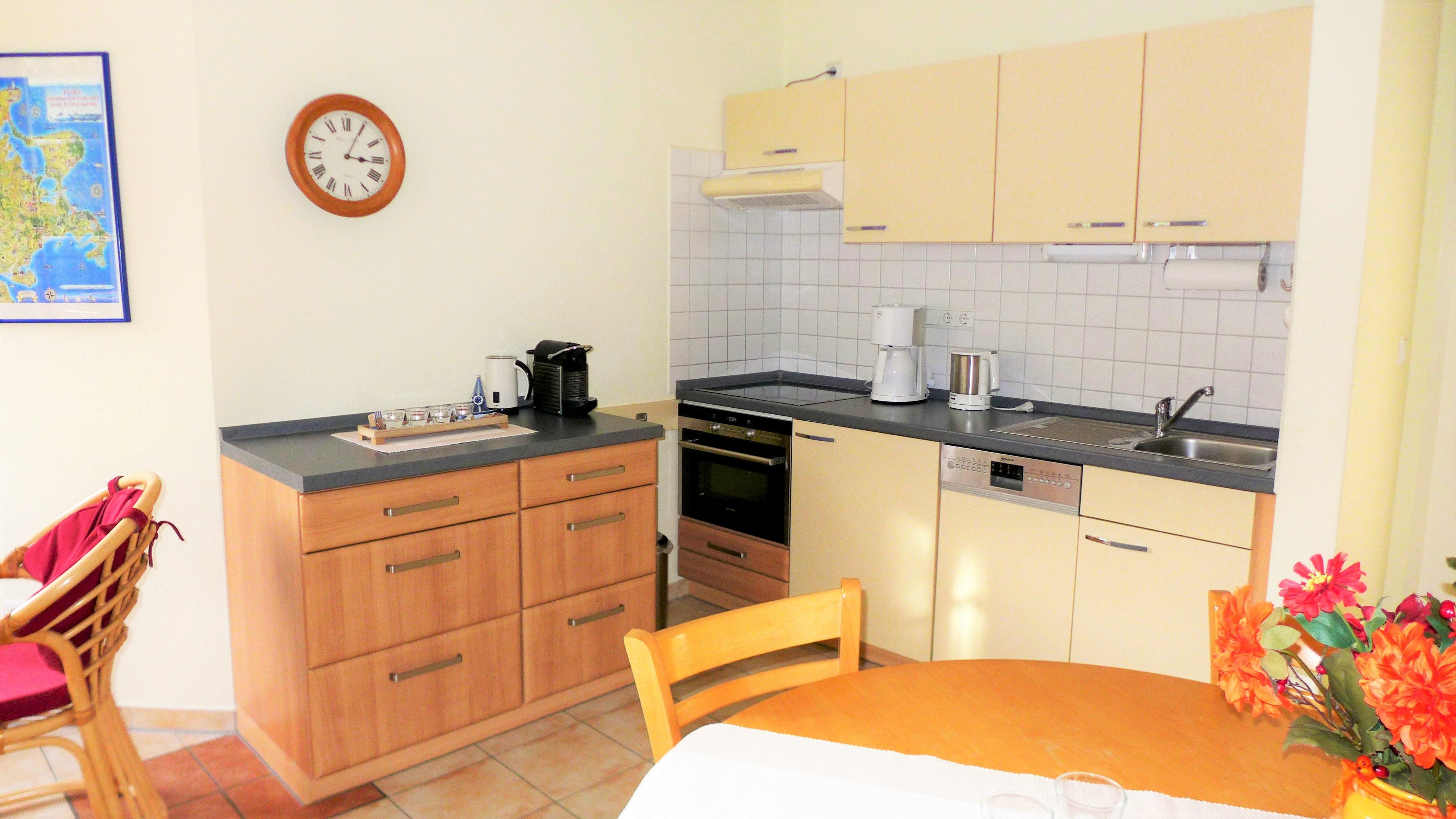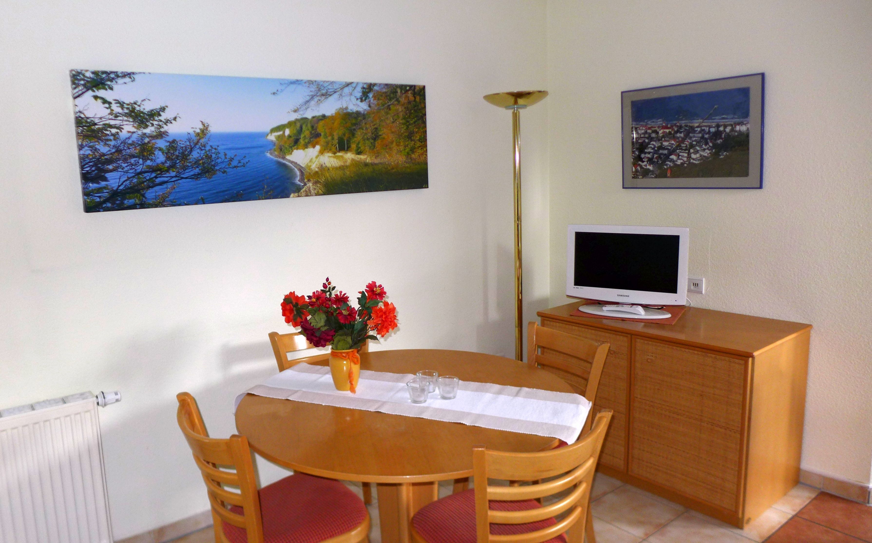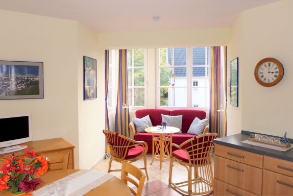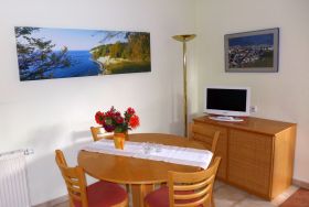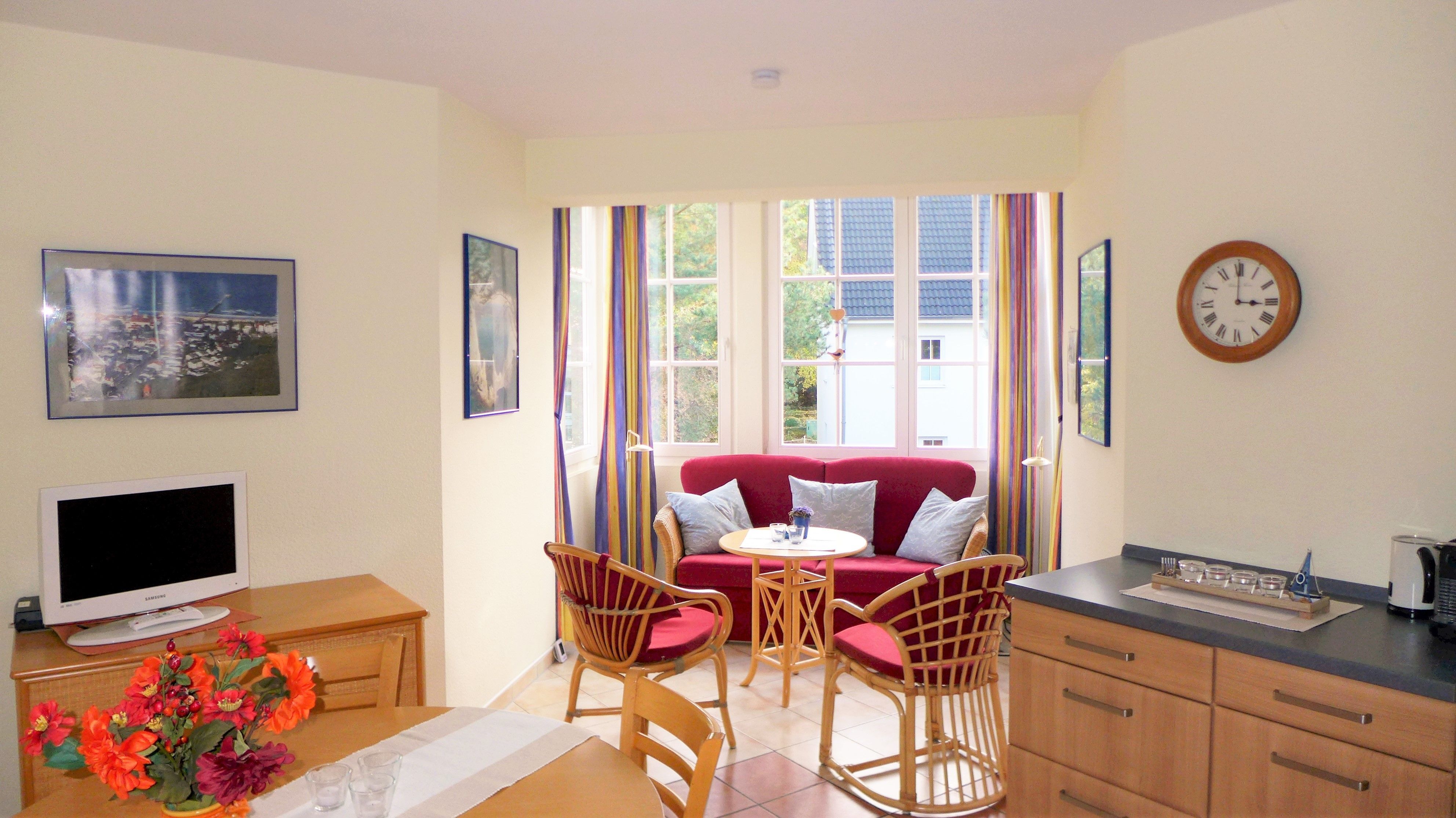 Diese Zweiraumwohnng liegt im ersten OG mit Balkon. Das Wohnzimmer mit integrierter Küchenzeile ist mit einer Schlafcouch und einem Eßbereich ausgestattet. Im Schlafzimmer mit Balkon finden sie ein Doppelbett und das Bad ist mit DU/WC ausgestattet.