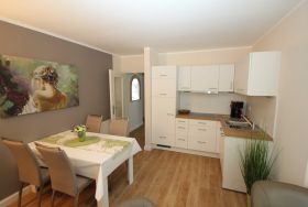 Nur 2 Minuten vom feinen Sandstrand und der Seebrücke entfernt, finden Sie die 1999 neu erbaute Villa Ambienta. Sie umfaßt 2 Häuser mit je 8 Zweiraumwohnungen für bis zu 4 Personen. Alle sind sehr geschmackvoll eingerichtet. In der hauseigenen Tiefgarage können Sie Ihren Pkw ( für Kleinbusse nicht geeignet) kostenlos parken.