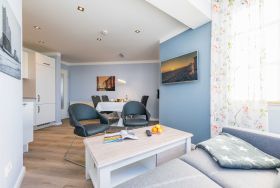 Für traumhaften Schlaf sorgt ein modernes Boxspringbett ( 2x 0,80 x 2,00) . Das neu renovierte und modern eingerichteteWohnzimmer verfügt über eine Schlafcouch, einem Eßbereich sowie der integrierten Küchenzeile ( Geschirrspüler, Backofen, Ceranfeld etc.).