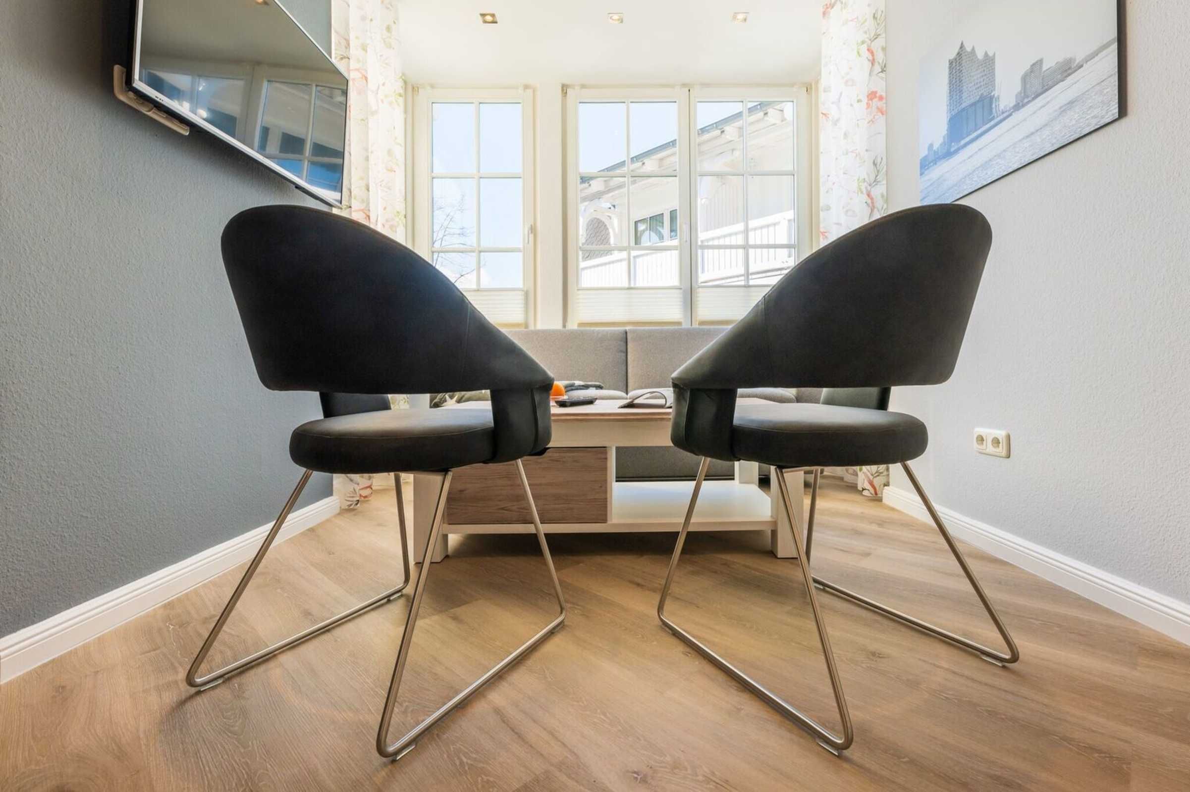 Das neu renovierte und modern eingerichteteWohnzimmer verfügt über eine Schlafcouch, einem Eßbereich sowie der integrierten Küchenzeile mit Geschirrspüler, Ceranfeld, Backofen etc.