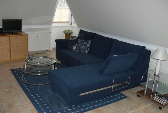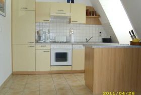 Sehr schöne und helle Zweiraumwohnung im Dachgeschoss mit großem Wohnzimmer und integrierter, offener Küchenzeile, einem Eßbereich und einer Schlafcouch, 2 Flügeltüren ( kein Balkon) können im Wohnzimmer geöffnet werden. Das Schlafzimmer verfügt über ein Doppelbett (2x90x200) und zusätzlichem TV ,das Badezimmer ist mit DU/WC ausgestattet.