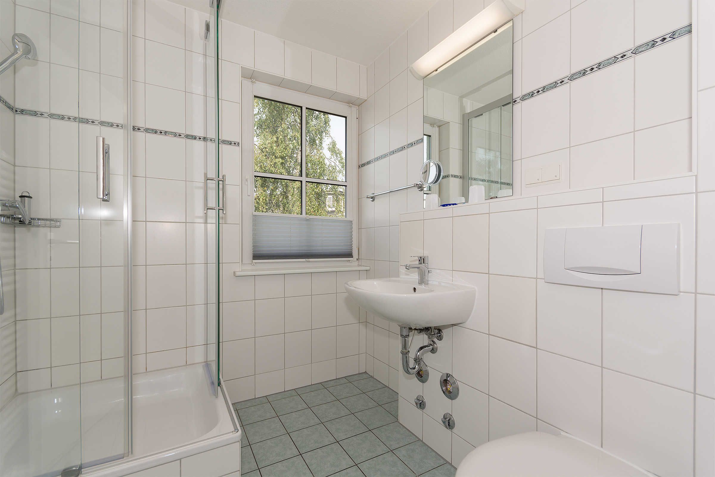Im Badzimmer finden Sie eine Echtglasdusche und WC.