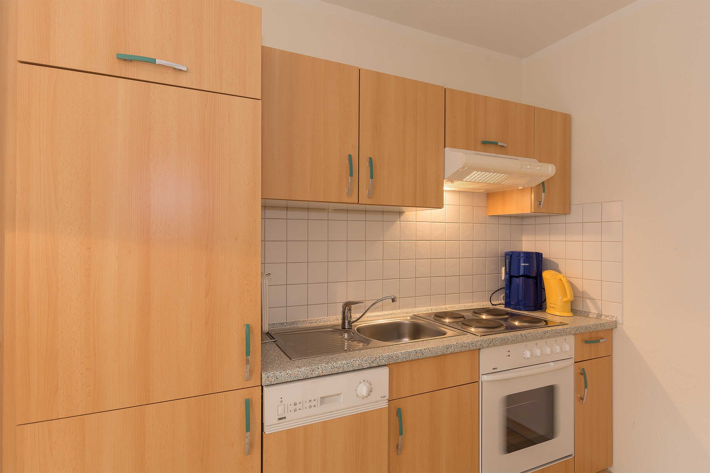 Die Zweiraumwohnungen verfügen über ein Wohn-/ Essbereich, einem Schlafzimmer mit Doppelbett und einem Duschbad.