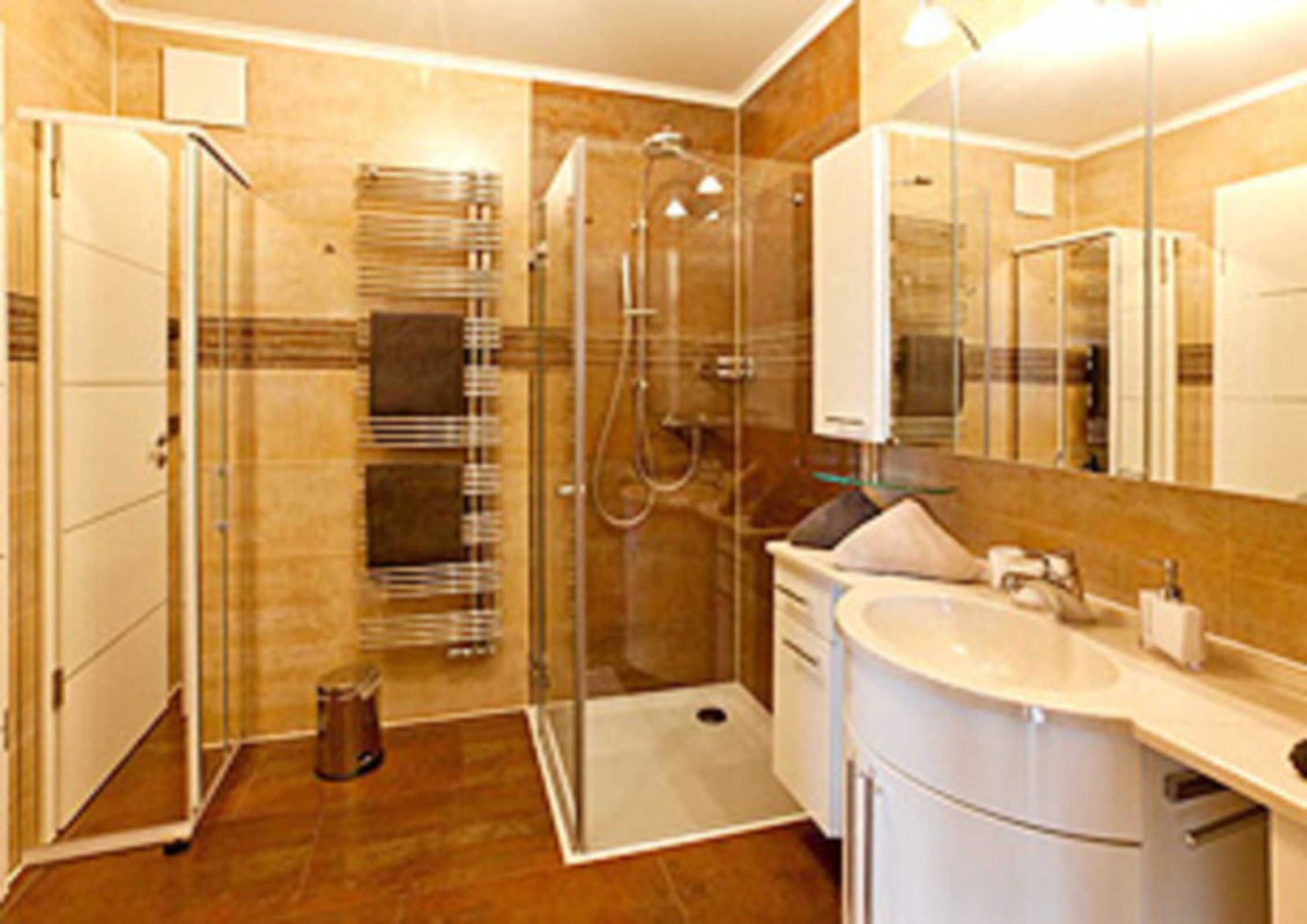 Zwei Bäder, eines davon mit Badewanne, das andere mit bodengleicher Dusche garantieren höchsten Badespaß noch dazu bei leiser Musik oder den aktuellen Nachrichten. Beide Bäder sind mit je einem WC, einem Waschtischschrank und einem Spiegelschrank mit Kosmetikspiegel und Haartrockner komfortabel ausgestattet.