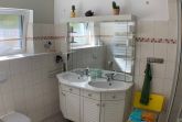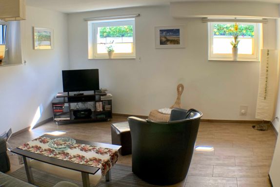 Unsere Ferienwohnung befindet sich im Souterrain und ist ca. 57 qm groß. Sie verfügt über ein Wohnzimmer, ein Schlafzimmer mit Doppelbett (1,80 breit), Esszimmer, eine kleine Küche und ein Bad mit Dusche/WC. Für die 2. Person kann eine Aufbettung auf der Schlafcouch im Wohnzimmer erfolgen. Das Schlafzimmer ist das Durchgangszimmer zum Badezimmer.