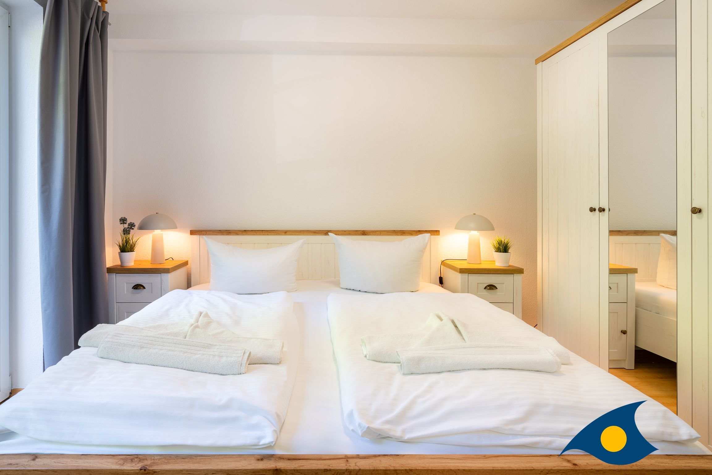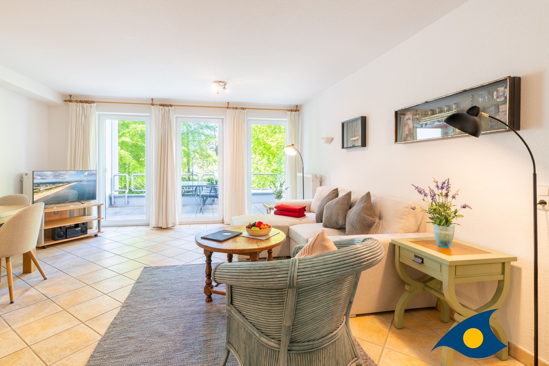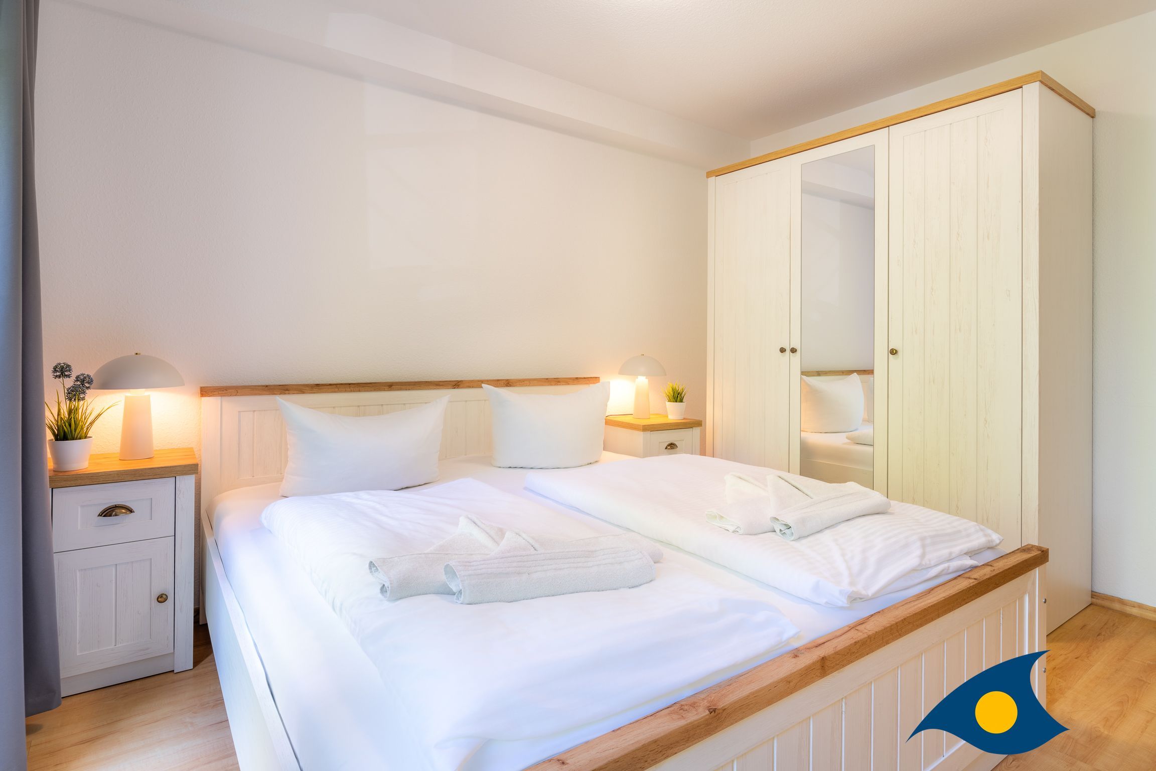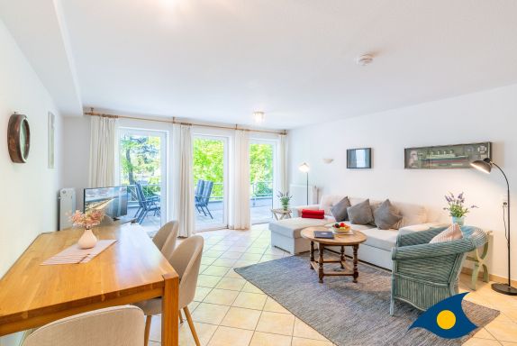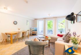 Dieses maritim eingerichtete Appartement empfängt Sie mit einem gemütlichen Wohnzimmer, einem Schlafzimmer mit einem bequemen Doppelbett, einem Badezimmer mit WC und Dusche und einer separaten Küche. Durch das Gäste-WC, dem großen Esstisch under der komfortablen Schlafcouch im Wohnbereich bietet diese schöne Ferienwohnung die besten Voraussetzungen für einen Urlaub mit der Familie oder Freunden (max. 4 Personen). Das Highlight der Wohnung ist der ca. 18 qm große Südbalkon. Durch die maritimen Details und den ausgewählten Einrichtungsgegenständen, werden Sie sich in dem Appartement 18 sehr schnell zu Hause fühlen.