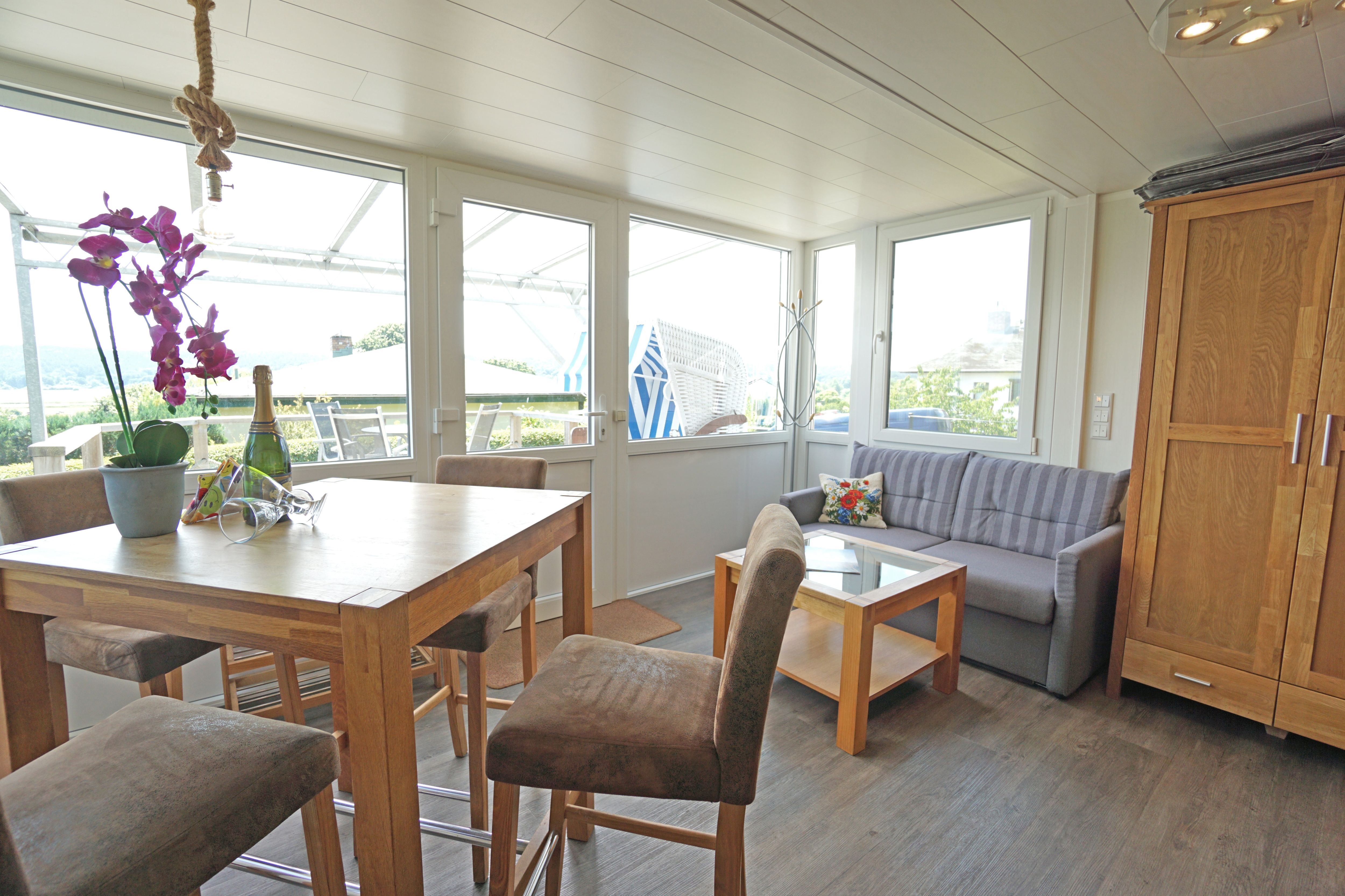 Der Bungalow ist freundlich und gemütlich eingerichtet. Wohnraum mit