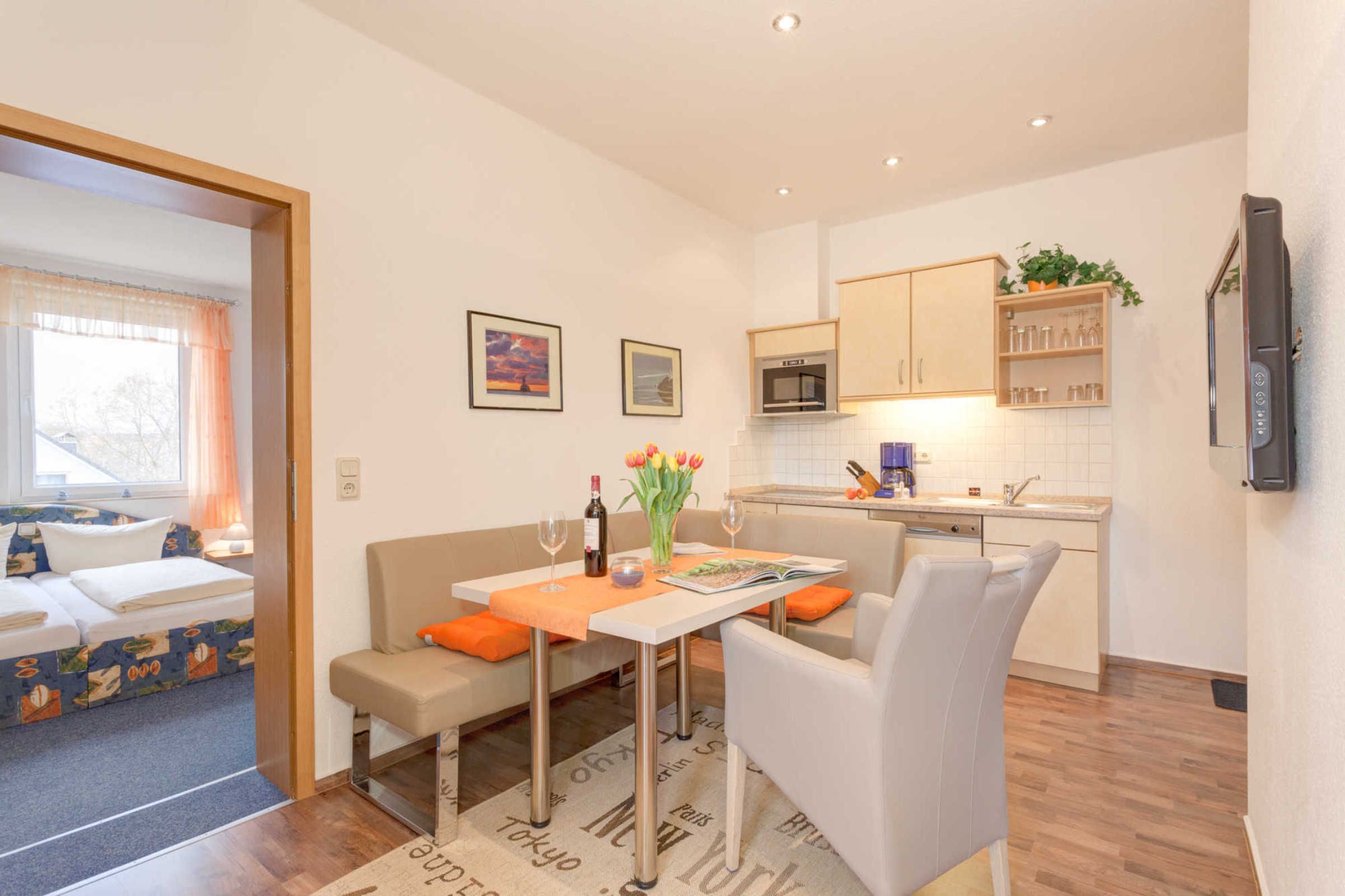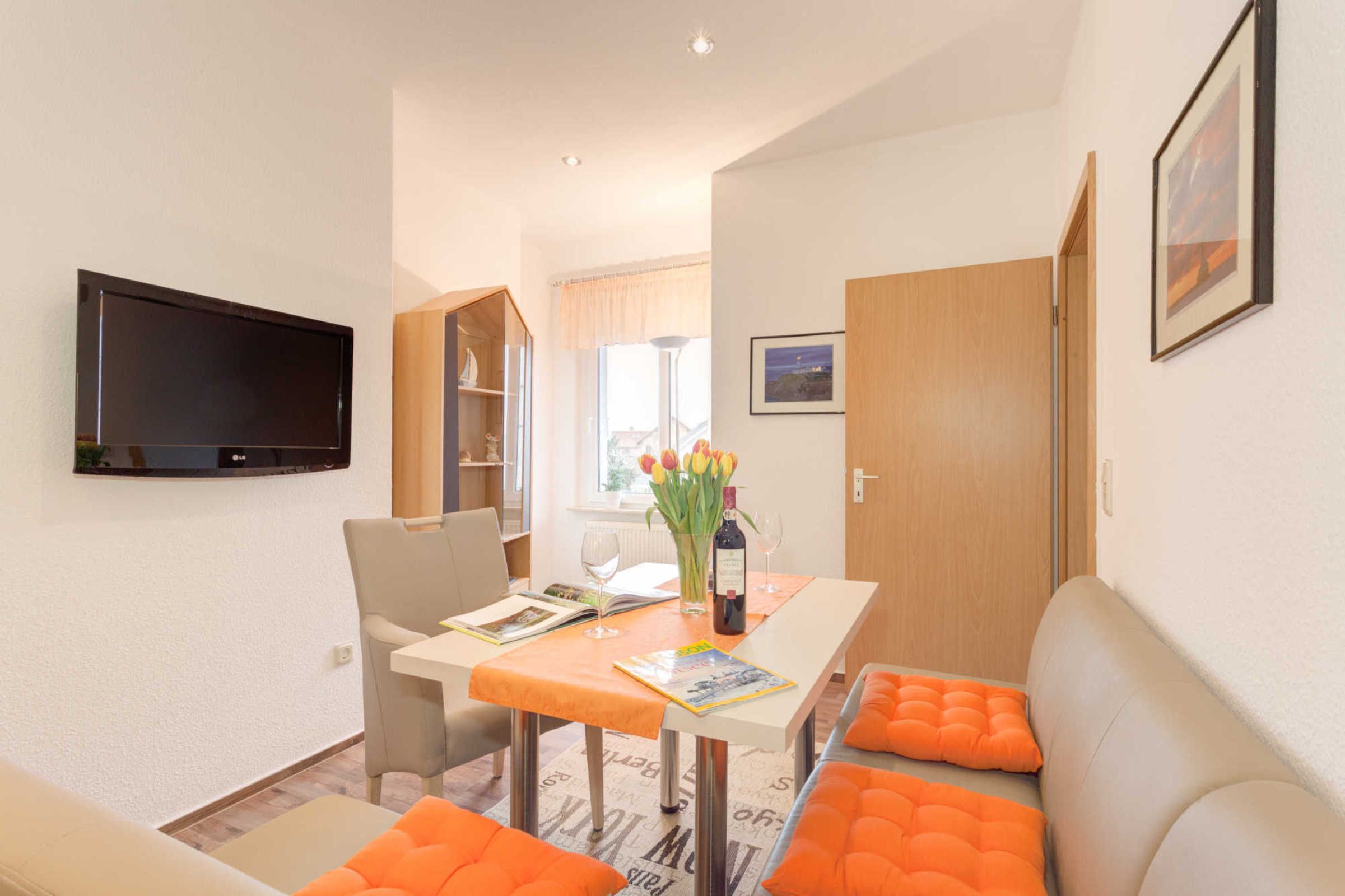 Die Ferienwohnung ist wohnlich möbliert, geschmackvoll eingerichtet und praktisch ausgestattet.