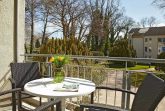 Freundliche,sehr helle Zweizimmer Ferienwohnung (45qm) für 2 - 4 Personen mit Balkon, direkt an der Promenade in gepflegtem Park mit altem Baumbestand gelegen. Die Wohnung hat neben dem Wohn- und Essbereich eine offene Küche mit Mikrowelle, Geschirrspüler, Herd und Backofen. Das Schlafzimmer verfügt über ein Doppelbett, die Doppelschlafcouch im Wohnbereich ist für die 3. und 4. Person.