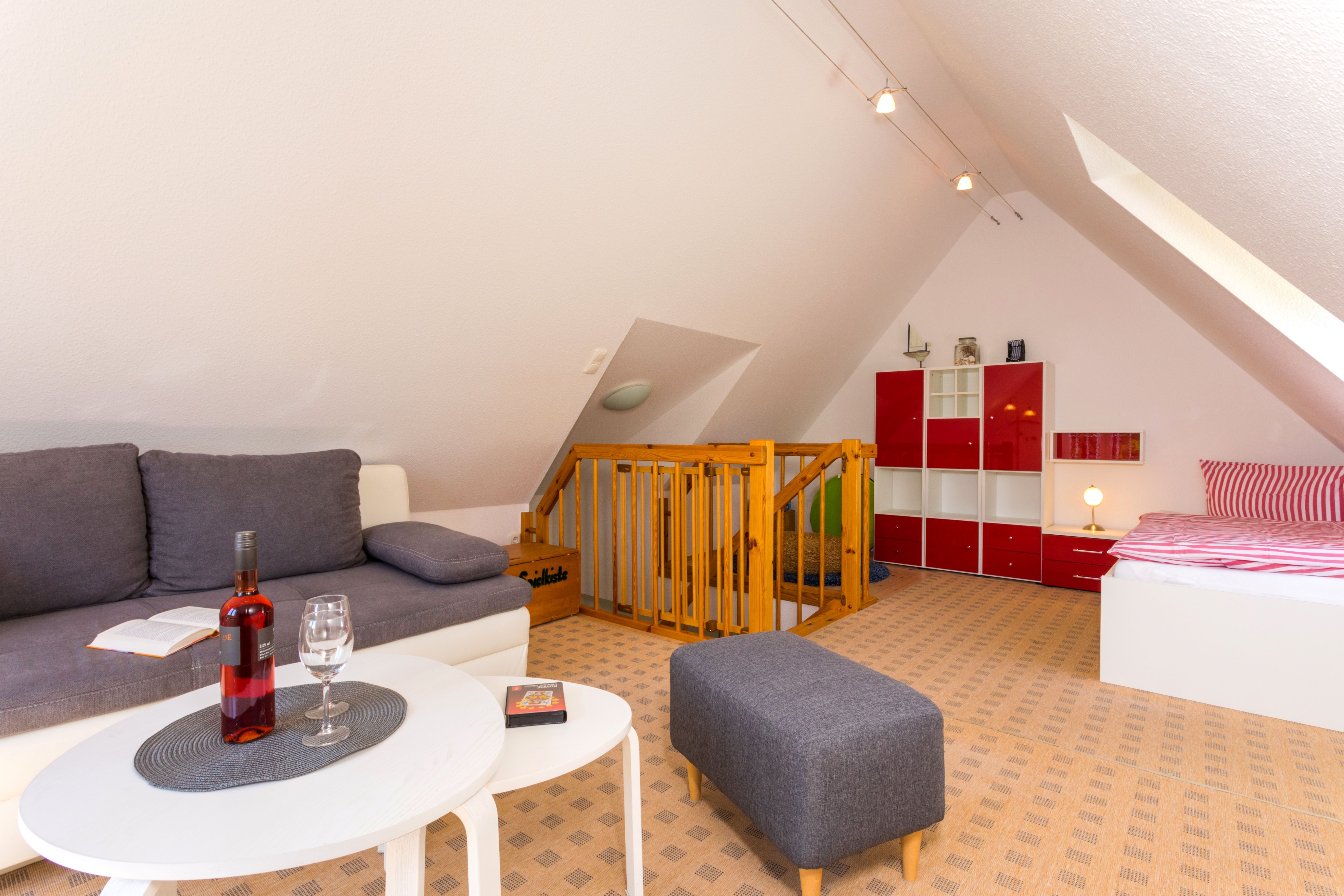 • Wohnraum mit offener Küche, Flat-TV mit ca. 100cm Bilddiagonale, Stereoradioanlage, DVD-Player, Internet-WLAN