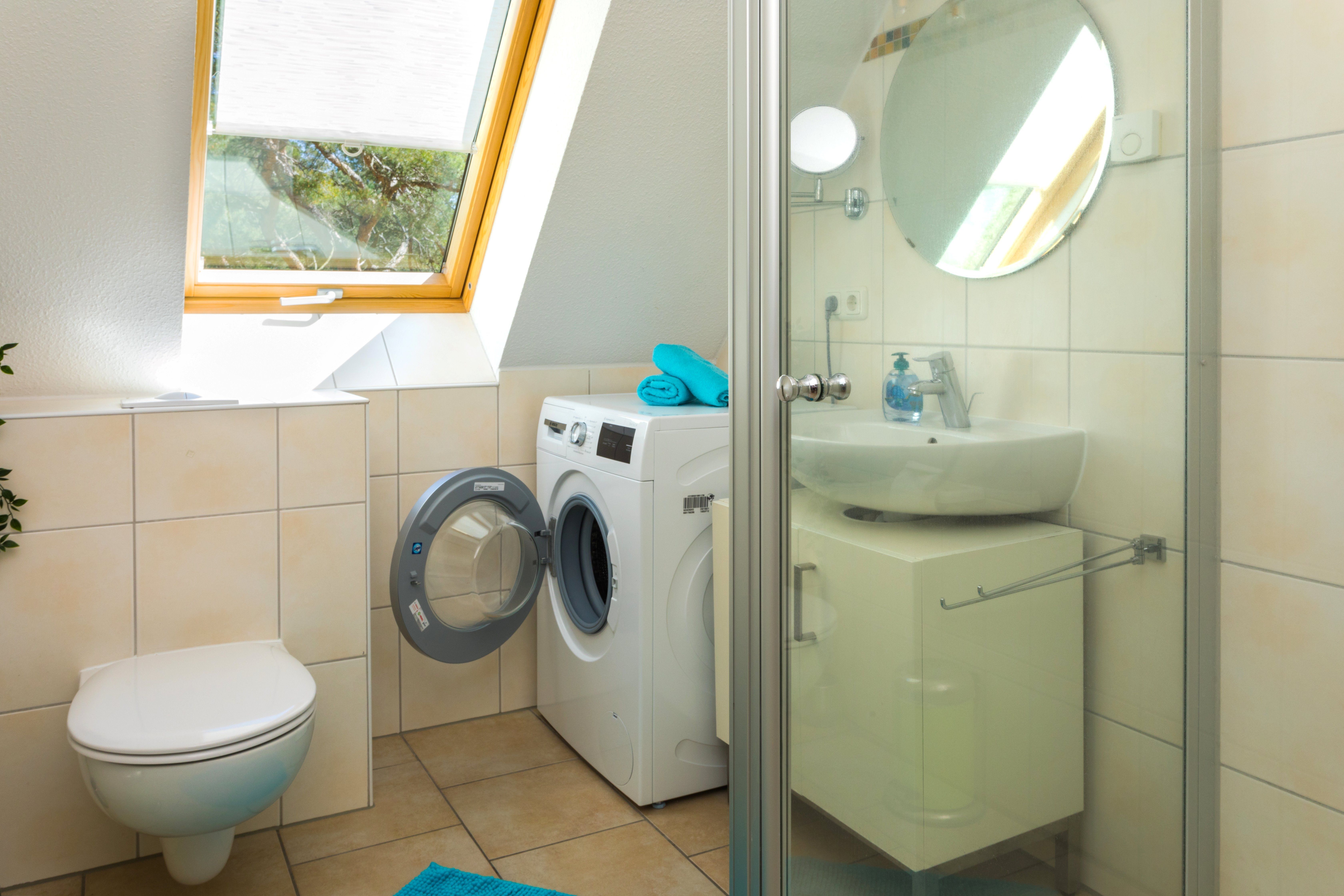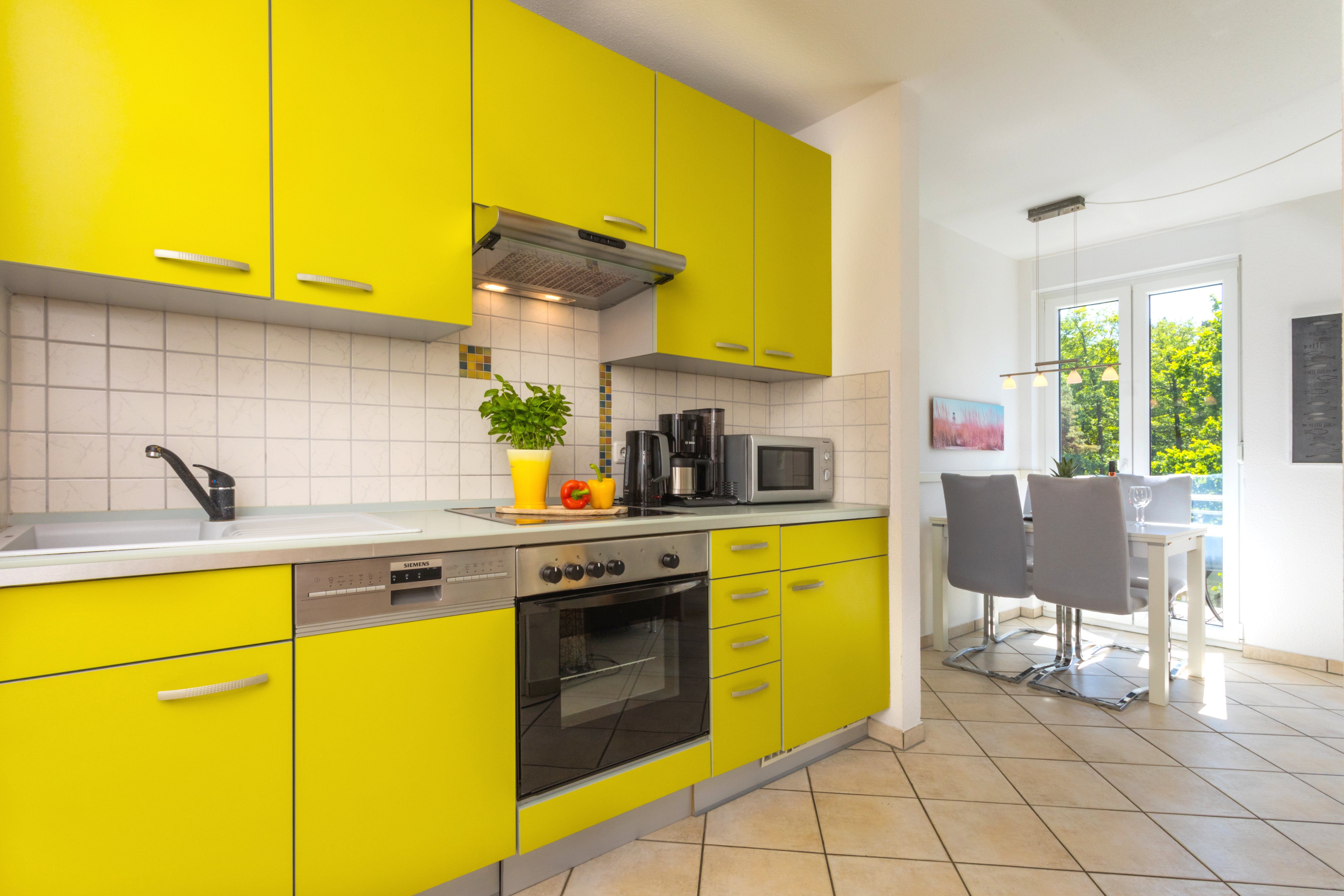 • Küchenzeile mit Geschirrspüler, Mikrowelle, Kühlschrank mit Gefrierfach, Herd (Ceran) mit Backröhre, Kaffeemaschine, Toaster und Wasserkocher