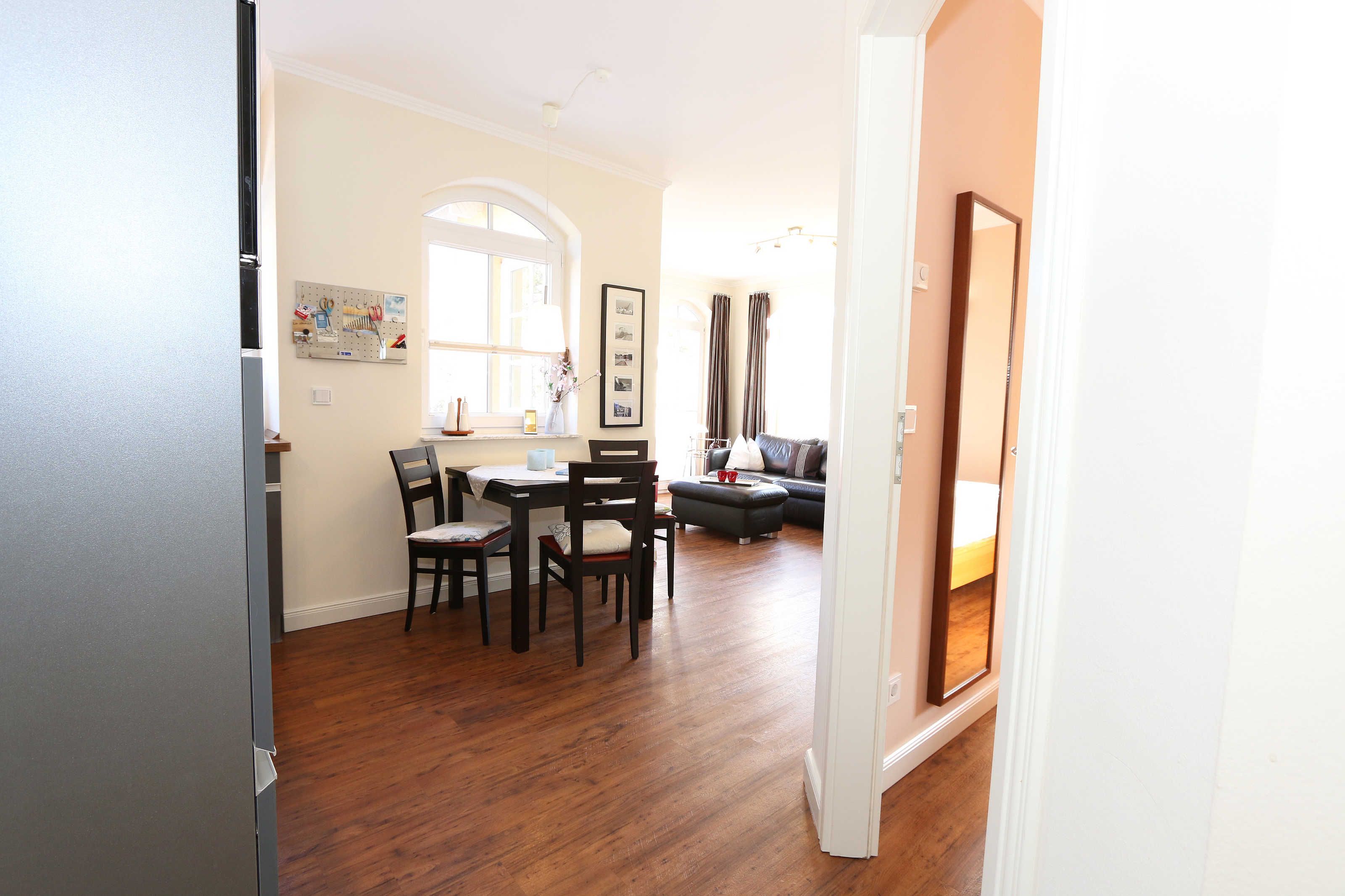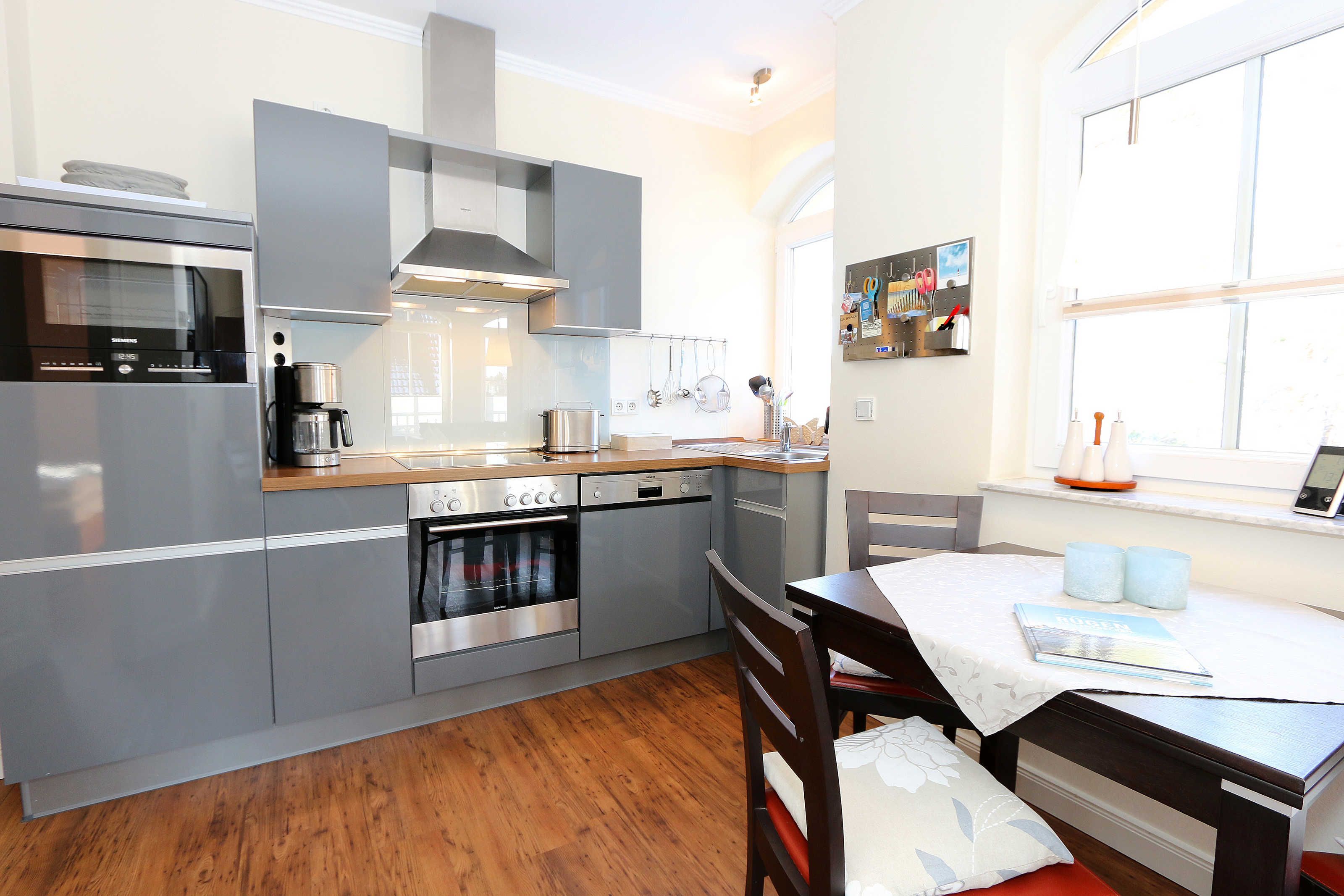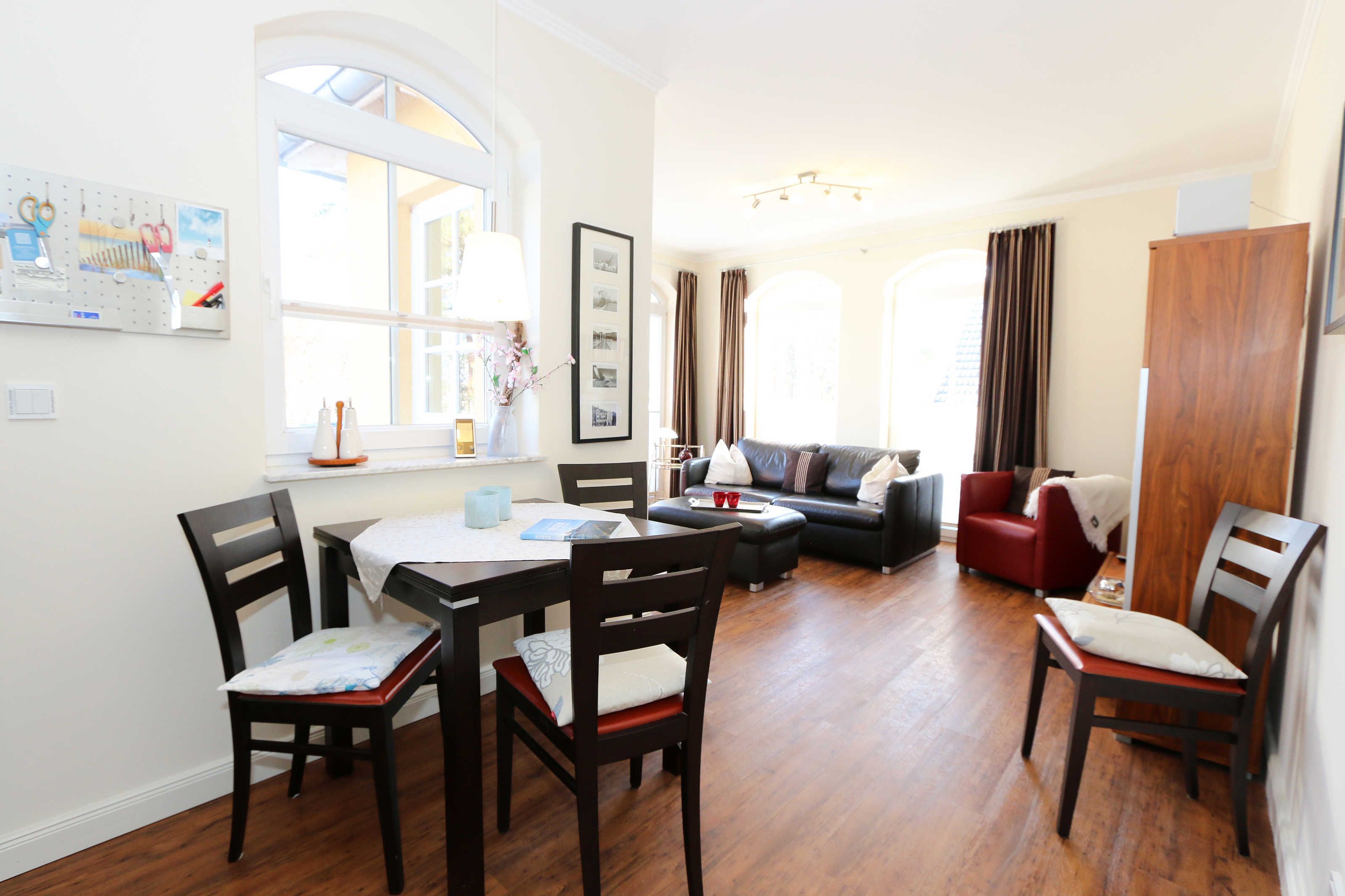 Ihre Nichtraucher/Ferienwohnung ist exklusiv mit viel Liebe zum Detail ausgestattet. Sie wohnen in einer 45 qm 2-Zimmer Wohnung für 2-3 Personen. Vom Balkon im 2. OG aus genießen Sie den Blick auf den Kurpark. Weiterhin finden Sie eine hochwertige, voll ausgestattete Pantry-Küche (Siemens-Küchengeräte, Herd, Backofen, Mikrowelle, Kühlschrank, Geschirrspülmaschine, Kaffeemaschine, Toaster, Wasserkocher, Mixer) mit einer Essecke für drei Personen. In der gemütlichen Sitzecke bestehend aus Ledercouch (ausklappbar mit Lattenrost und Matratze 1,40m x 2,00m) und zwei Sesseln können Sie es sich gemütlich machen. Dort steht Ihnen ein Smart-TV zur Verfügung. Das separate Schlafzimmer ist mit einem Doppelbett (2x0,90m x2,00m mit Sommer-und Winterbett in Übergrößen), ebenfalls Flachbildfernseher sowie geräumigem Schrank mit Bügelbrett und Bügeleisen ausgestattet. Das hochwertige Bad verfügt über Dusche, WC, Kosmetikspiegel, Fön und Handtuchheizkörper sowie einen exklusiven Waschtisch mit passenden Wandfliesen von Villeroy + Boch. Auch im Urlaub brauchen Sie in der Wohnung nicht auf einen Internetanschluss (WLAN) verzichten. Dieser ist für Sie inklusive!!! Für unsere kleinen Gäste ist ein Kinderreisebett (ohne Matratze und Bett Inlett) inklusive vorhanden. Ein Hochstuhl kann nicht gestellt werden. Im Keller des Hauses befindet sich eine Waschmaschine und ein Trockner, der gegen Gebühr genutzt werden kann. Die Erstausstattung eines Wäschepaketes (komplette Bettwäsche, 1 Duschhandtuch, 2 kleine Handtücher) können Sie bis 14 Tage vor Anreise gegen einen Aufpreis dazu buchen oder durch eigene ergänzen. Ab 2 gebuchten Paketen erhalten Sie einmalig 1 Geschirrhandtuch und 1 Duschvorleger hinzu. Zur Wohnung gehört ein Außenstellplatz Nr. 14. Im Preis inbegriffen ist ein Strandkorb (von ca. Mai bis September), in dem Sie die See auch bei einer steifen Brise genießen können. Wir freuen uns auf Sie und heißen Sie herzlich willkommen in Baabe!