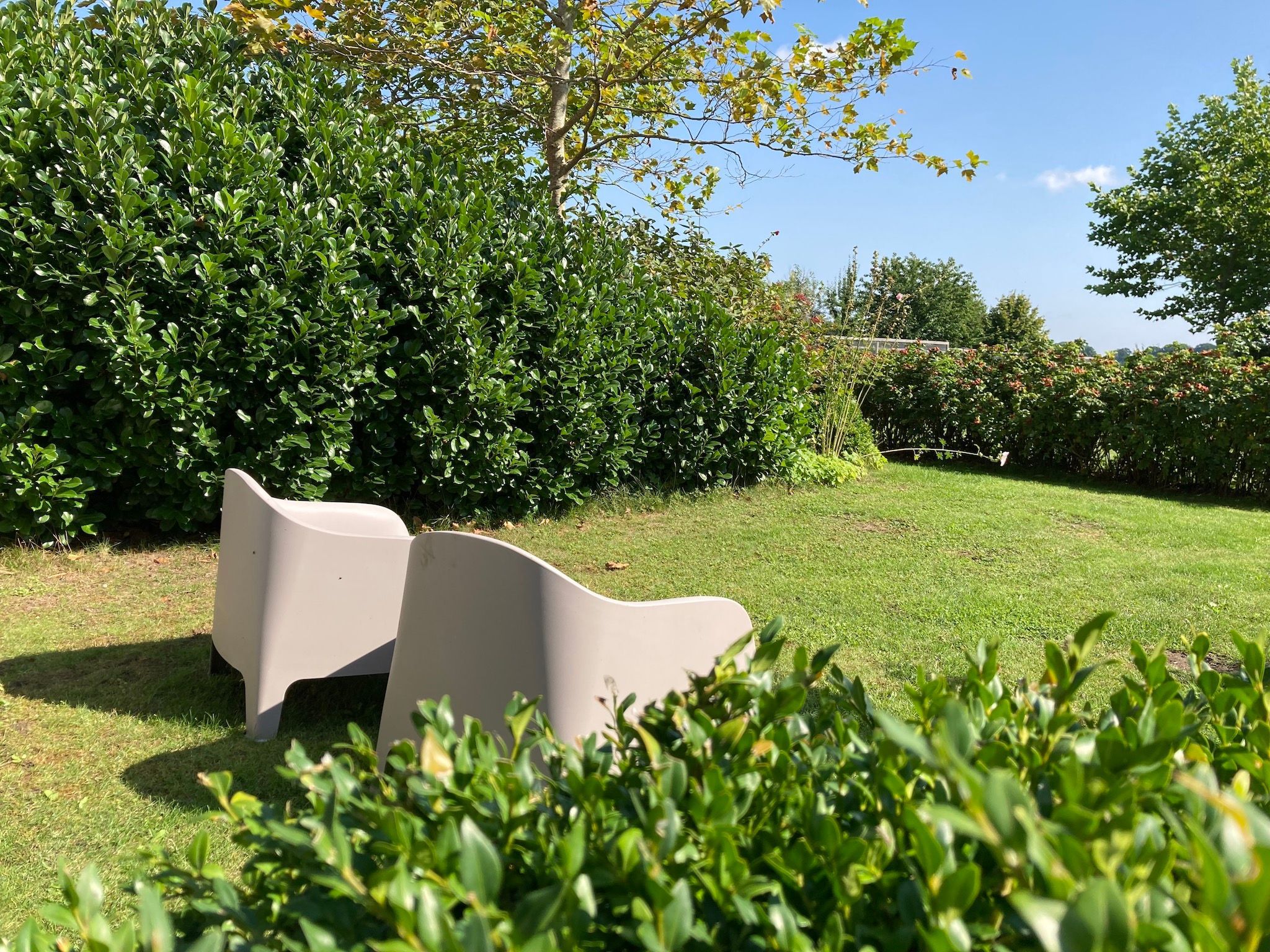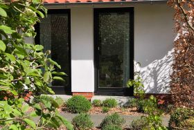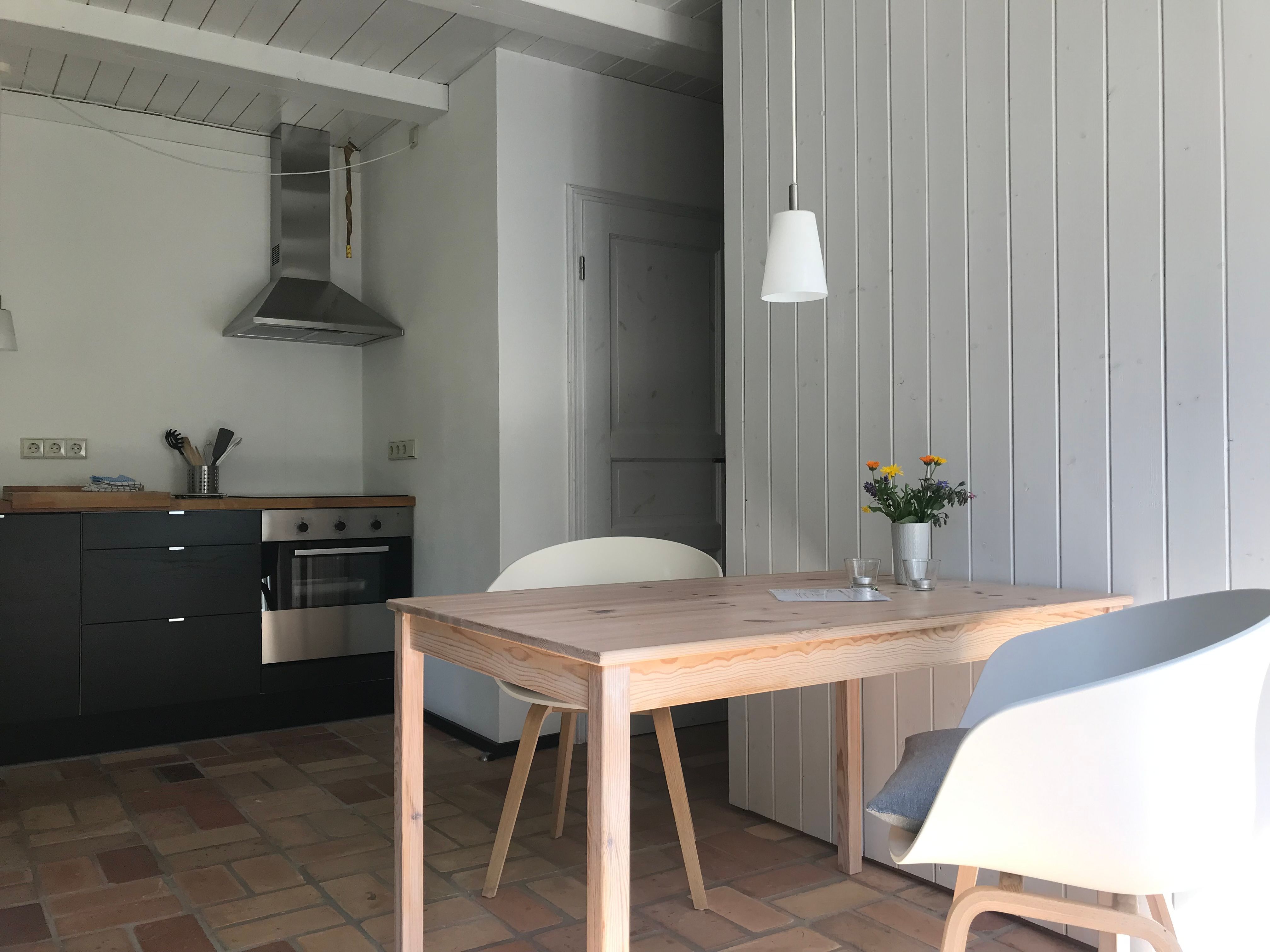 Hell und freundlich gestaltete Doppelhaushälfte für zwei Personen mit separatem Eingang und eigener Terrasse in einem weitläufigen, nicht eingezäunten Garten.