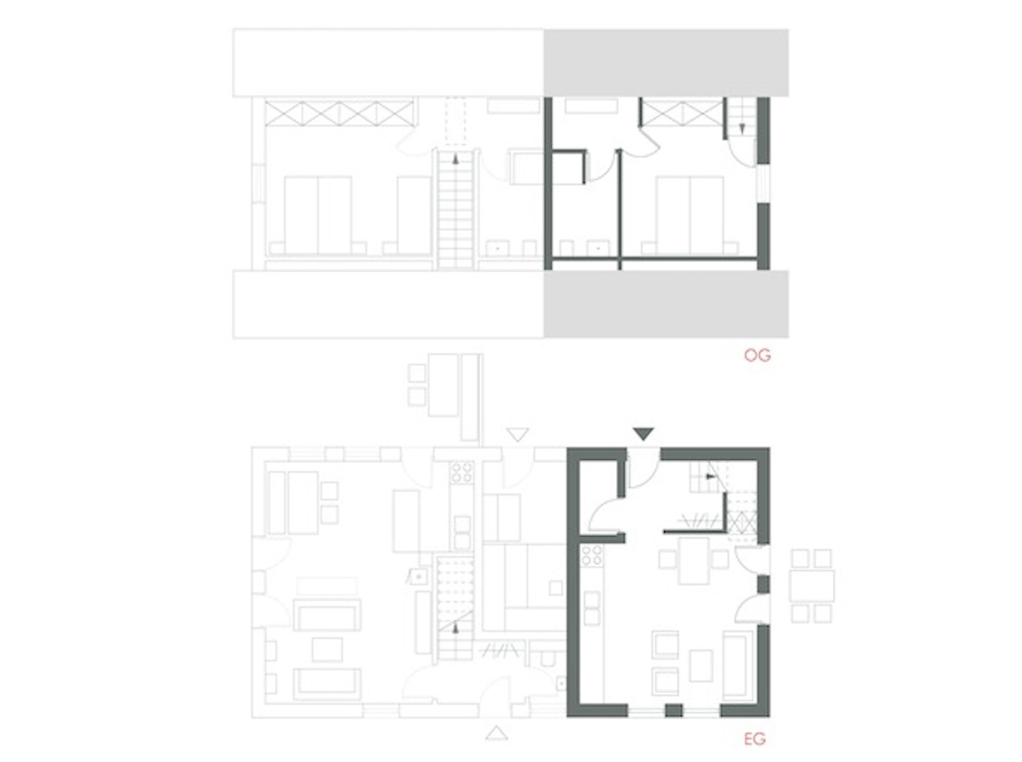 Im OG : 1 Schlafzimmer mit Doppelbett (180x200), Duschbad mit WC.