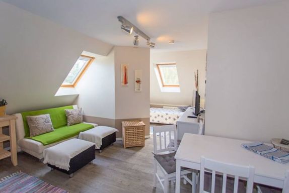 Die ca. 40 m² große Ferienwohnung Richard ist liebevoll und modern eingerichtet und befindet sich im Obergeschoss des Ferienhauses am Museumshof. Die Wohnung verfügt über einen Wohnraum mit Schlafcouch, Sat-TV, eine Küchenzeile mit Herd, Geschirrspüler, Mikrowelle, Toaster, Wasserkocher, Kaffeemaschine und Kühlschrank. Die Schlafcouch kann bei Bedarf für zwei Gäste (bis 12 Jahre) als Aufbettung hergerichtet werden. Ein WLAN-Anschluss ist vorhanden.