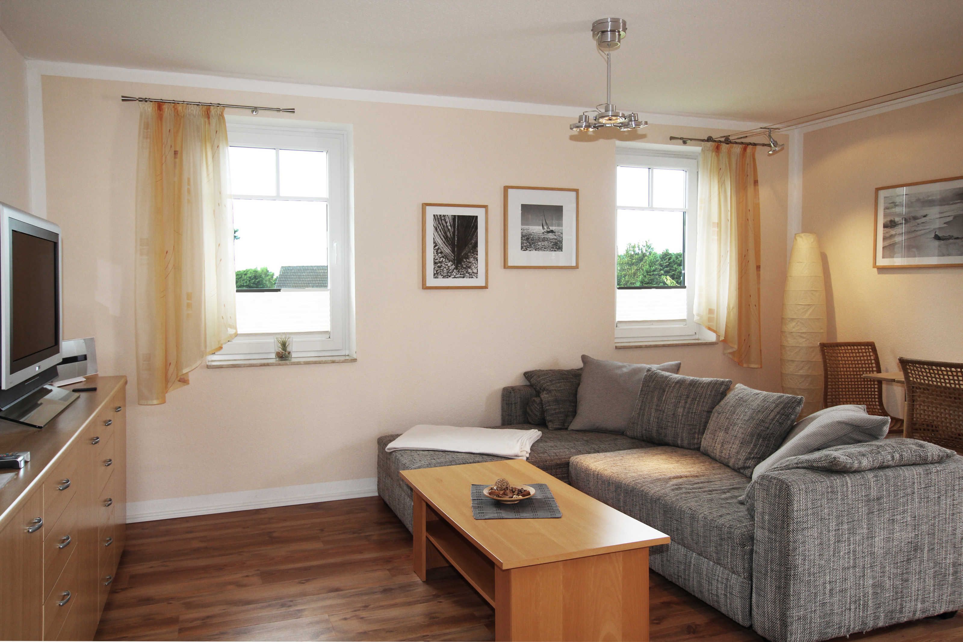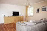 Wohnbereich mit Sofa, Flat-TV und Radio