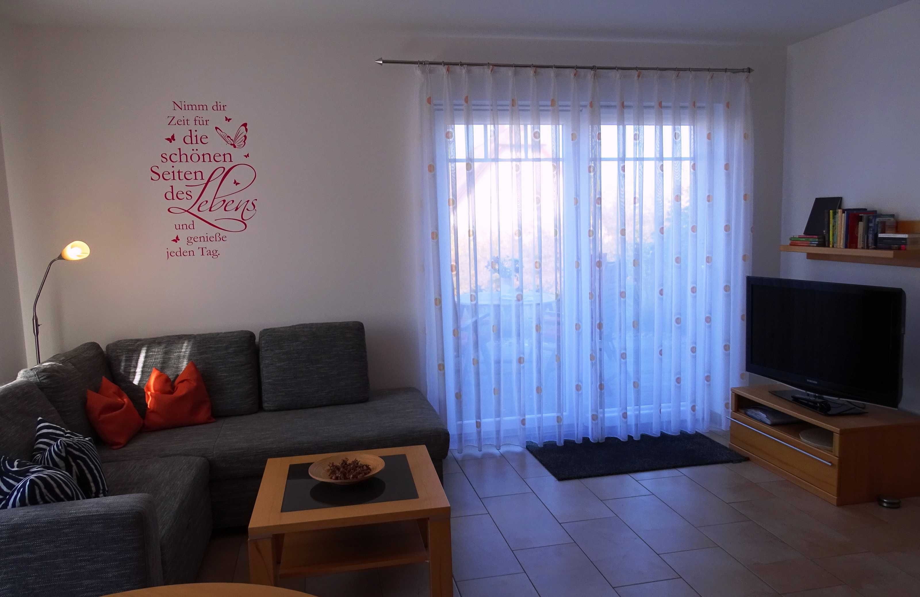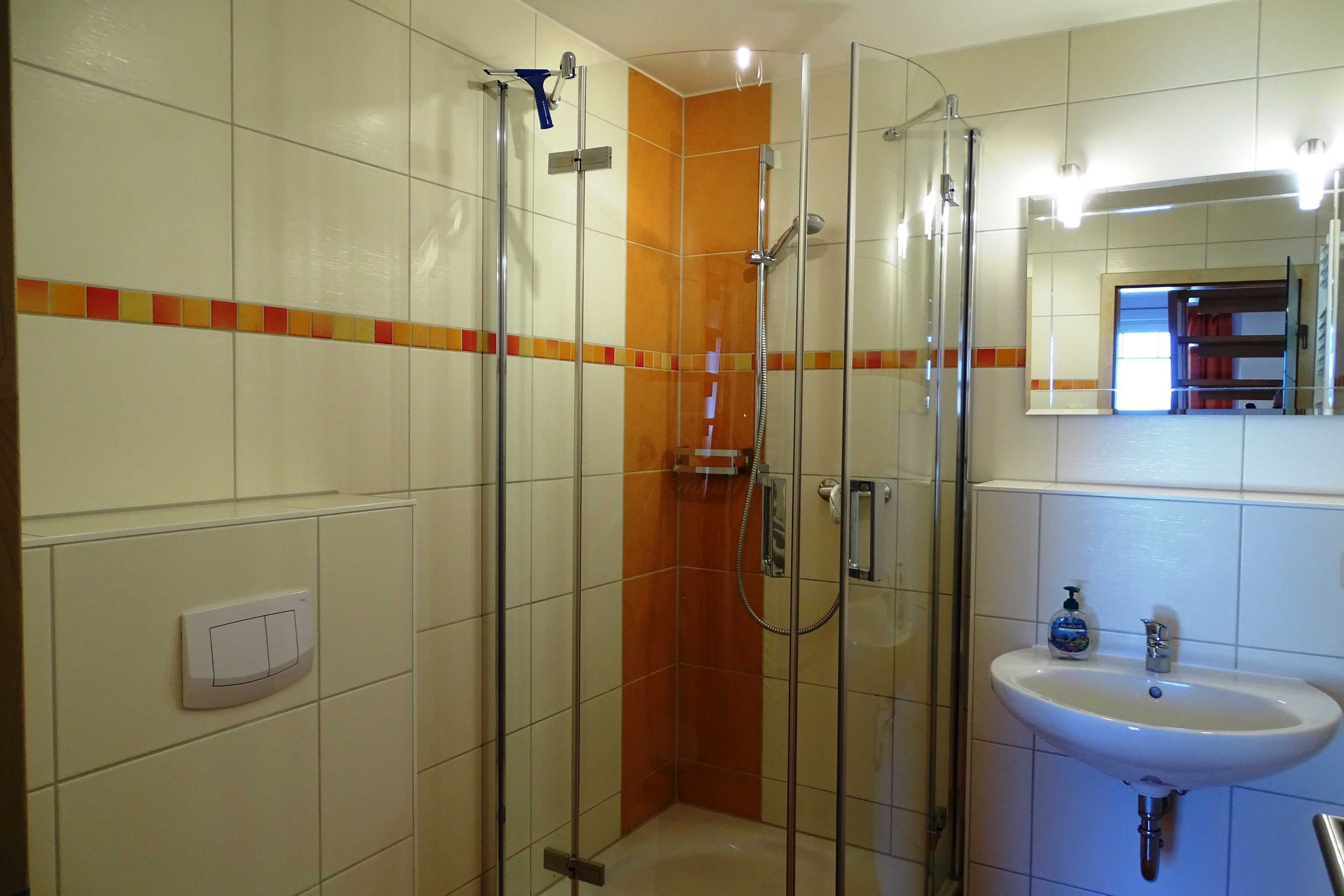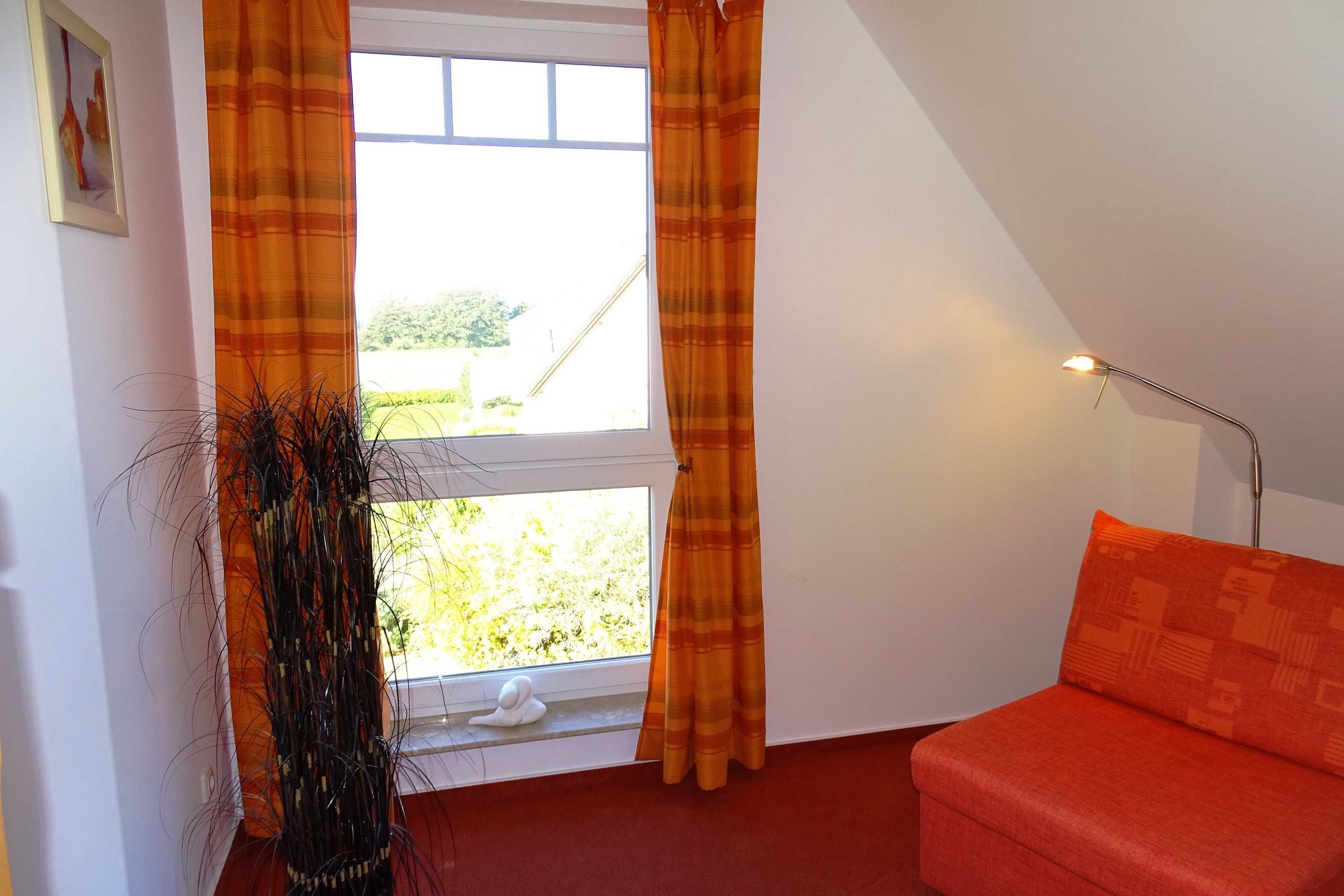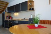 Die 70 m² große Ferienwohnung hat einen separaten ebenerdigen Eingang und jeweils eine Terrasse in Süd- und in Westlage mit Sitzgruppen. Erleben Sie hier einen unvergesslichen Sonnenuntergang! Im Erdgeschoss befindet sich das Wohnzimmer mit integrierter voll ausgestatteter Küche sowie ein Gäste-WC. Im ersten Obergeschoss befindet sich ein Schlafzimmer mit einem Doppelbett sowie ein Bad mit Dusche/WC. Vom ersten Obergeschoss erreichen Sie über eine normale Treppe den ausgebauten Schlafboden mit zwei Betten.
