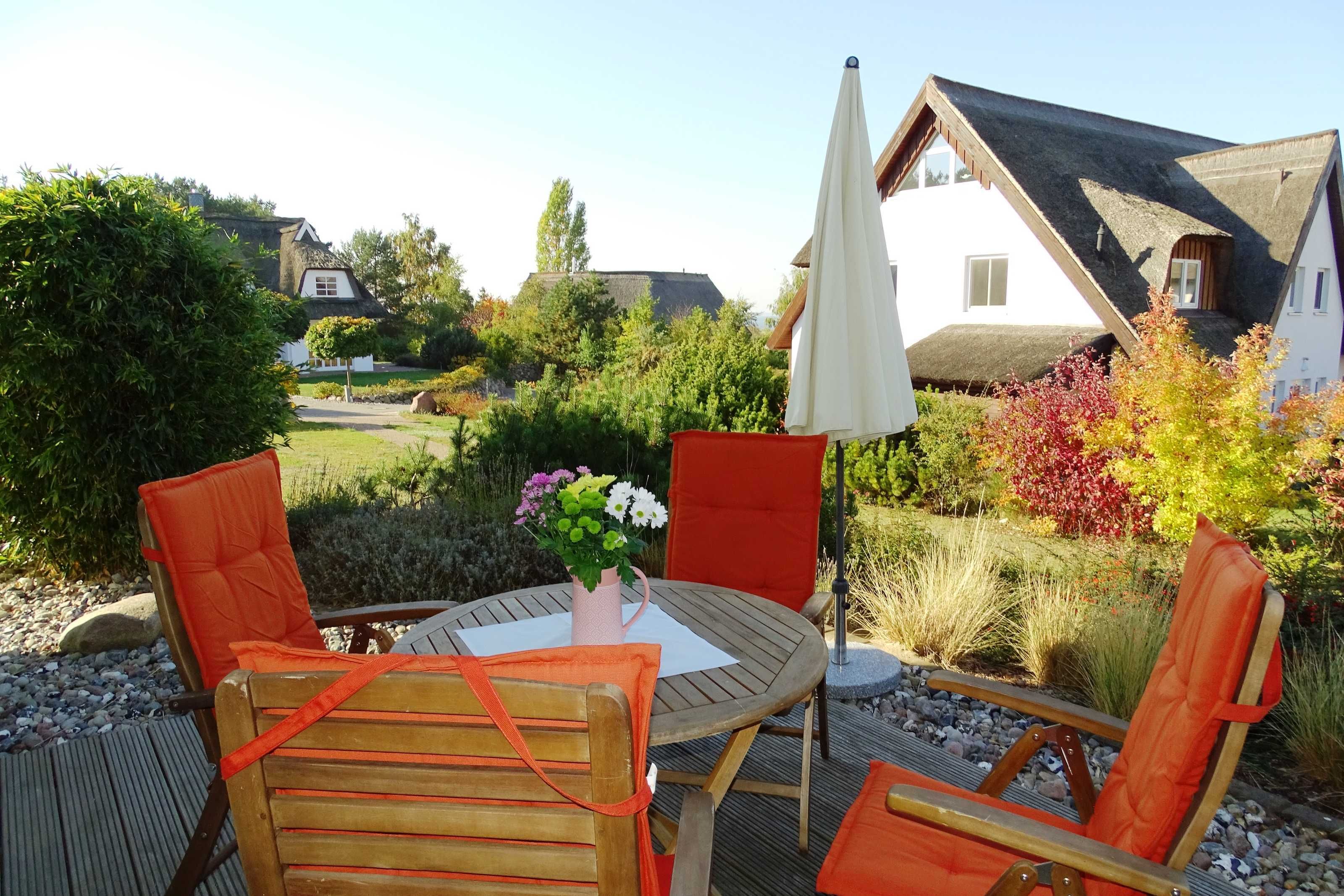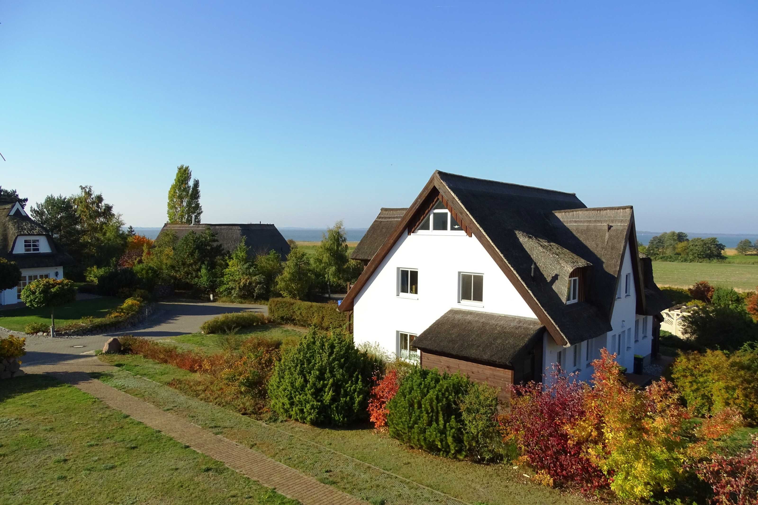 Herzlich Willkommen in unserer hochwertigen, komfortabel eingerichteten Ferienwohnung in einem neu erbauten reetgedecken Ferienhaus mit zwei Wohnungen in traumhafter, guter Wohnlage mit Blick auf das Achterwasser im Seebad Loddin. Die Wohnung ist für maximal vier Gäste geeignet. Entspannen Sie sich auf einer der beiden sonnigen Terrasse oder auf dem Balkon im ersten Stock mit herrlichem Blick in Richtung Achterwasser.