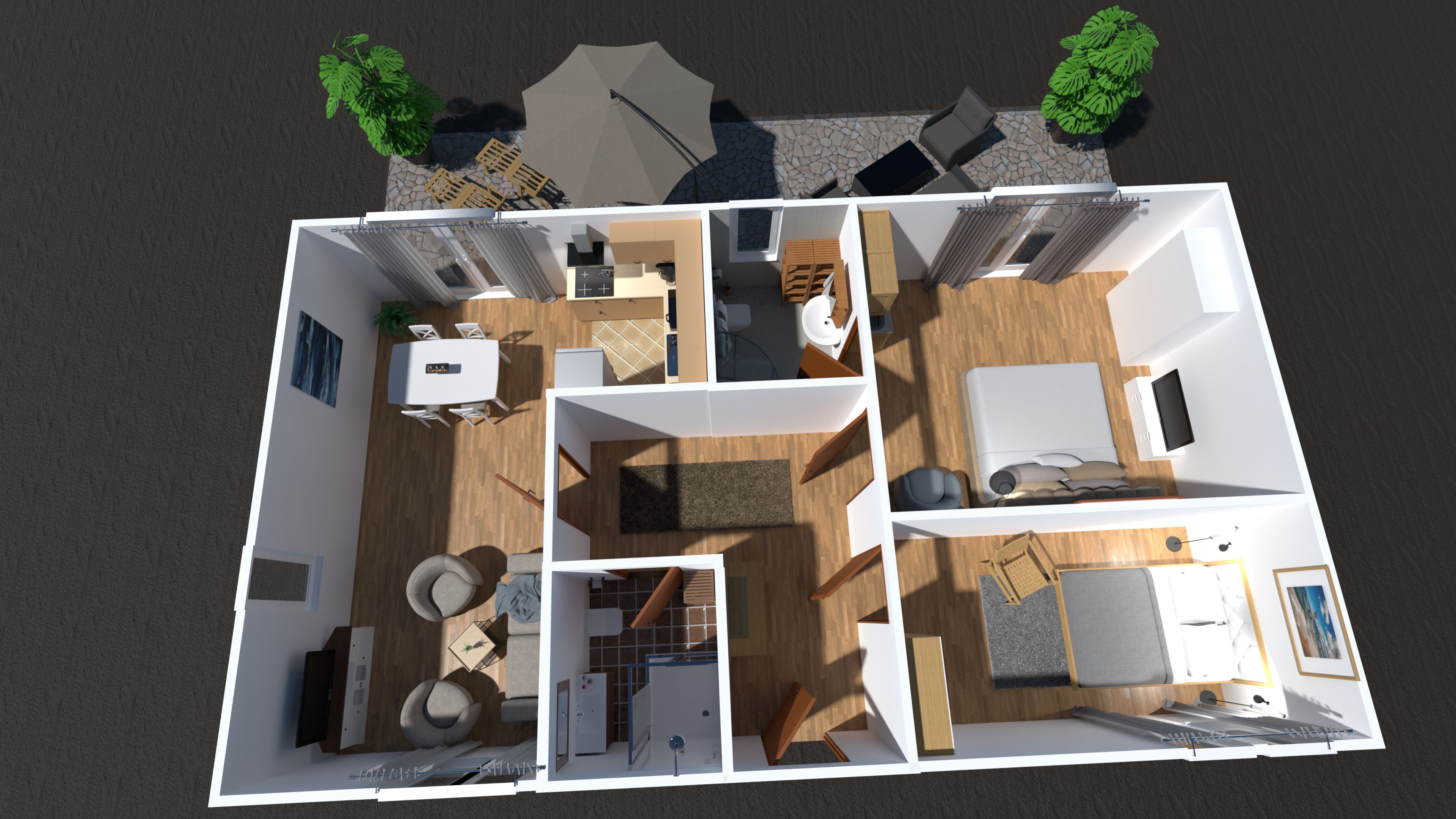 Hier erwarten Sie jetzt ein modern eingerichtetes Wohnzimmer mit Schlafcouch, zwei Schlafzimmer mit Doppelbetten, eine komfortabel ausgestattete Küche mit Backofen und Mikrowelle und zwei Badezimmer mit Dusche und WC. Auf der großzügigen Terrasse mit gemütlicher Sitzecke darf gerne gegrillt und die Abende genossen werden.