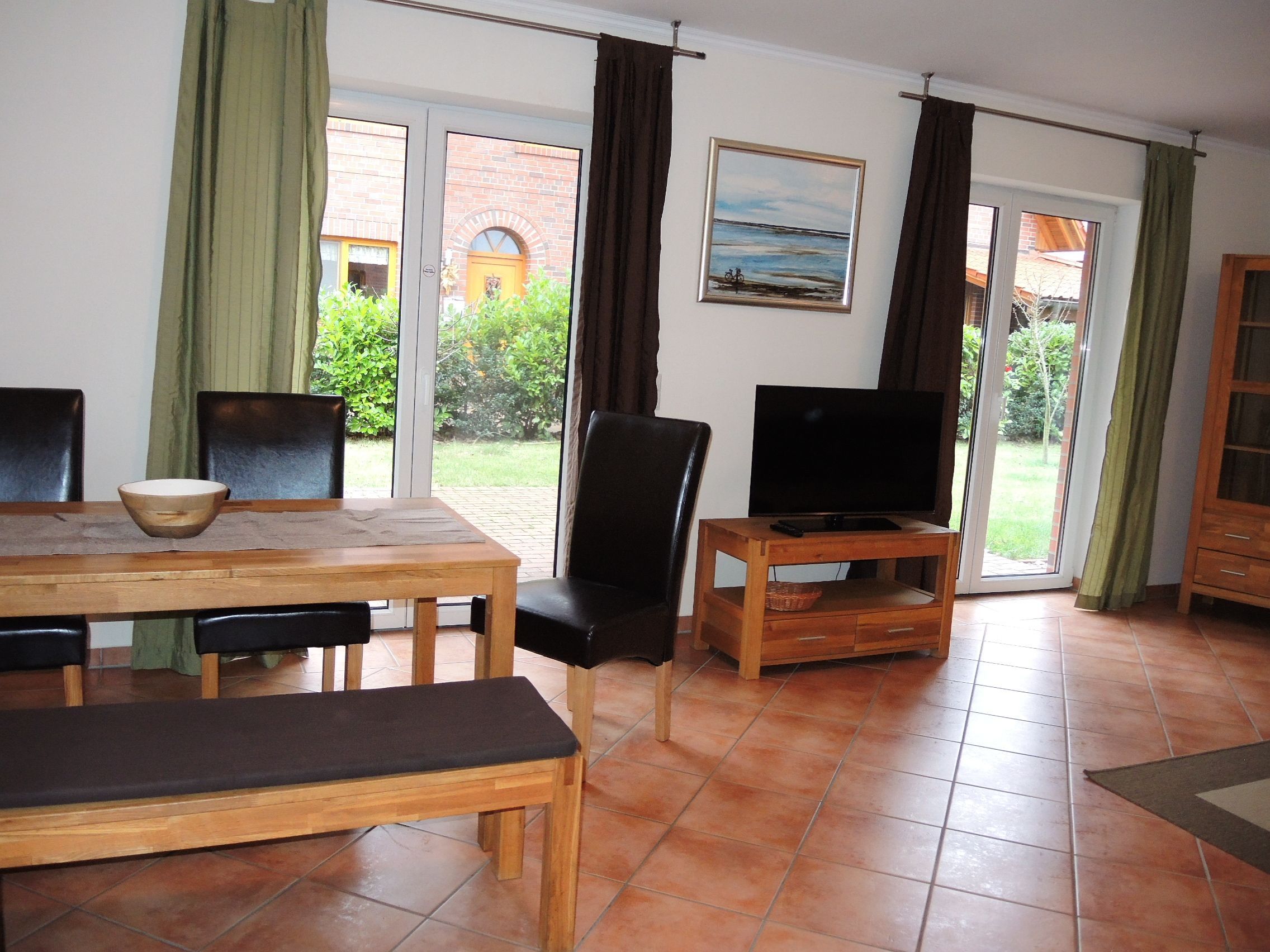 Die ebenerdige Suite Helweg mit Terrasse (Abendsonne) direkt am Wohnzimmer, verfügt über zwei Schlafzimmer mit jeweils zwei Schlafgelegenheiten. Ein Kinder-Reisebett kann auf Wunsch dazugebucht werden. Im geräumigen Wohnzimmer steht eine gemutliche Doppel-Couch, in diesem Raum ist eine vollausgestattetet Küche und ein Esszimmertisch für vier Personen integriert.