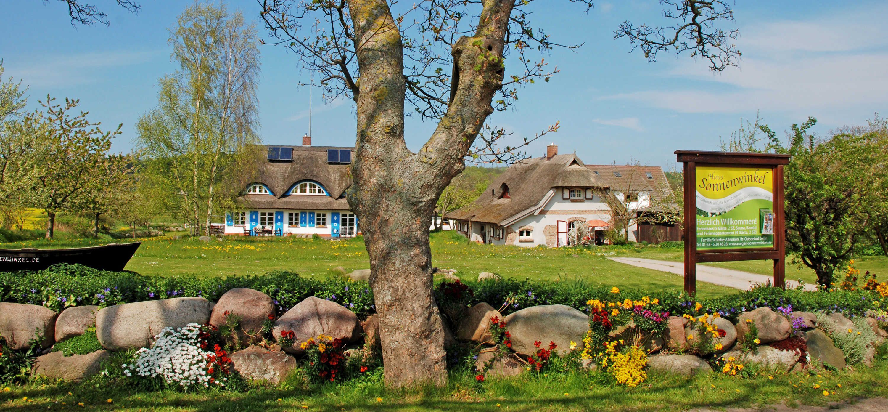 Zum Haus Sonnenwinkel gehören eine große Streuobstwiese, Spielrasen und Blumenwiesen, eine Schaukel, ein altes Fischerboot, Kaninchen, Hühner,eine liebe Katzen, eine Vogelvoliere, ein Bauerngarten, Lagerfeuer- und Grillplatz und die nette Gastgeberfamilie Scheibe. 2017 wurde Haus Sonnenwinkel vom Landestourismusverband bereits zum 4. Mal als -Familienfreundlicher Urlaub in MV- ausgezeichnet.