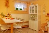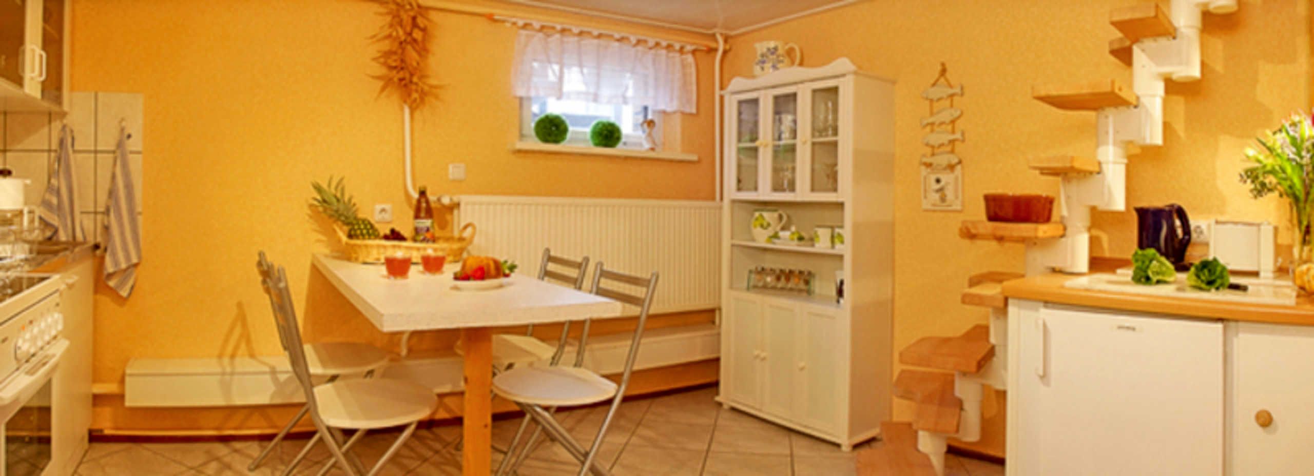 In der komplett eingerichteten Küche mit Geschirrspüler kann bequem am Tisch mit vier Stühlen gespeist werden.