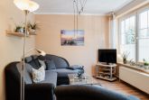 Ein helles Wohnzimmer mit Schlafsofa für 2 weitere Personen