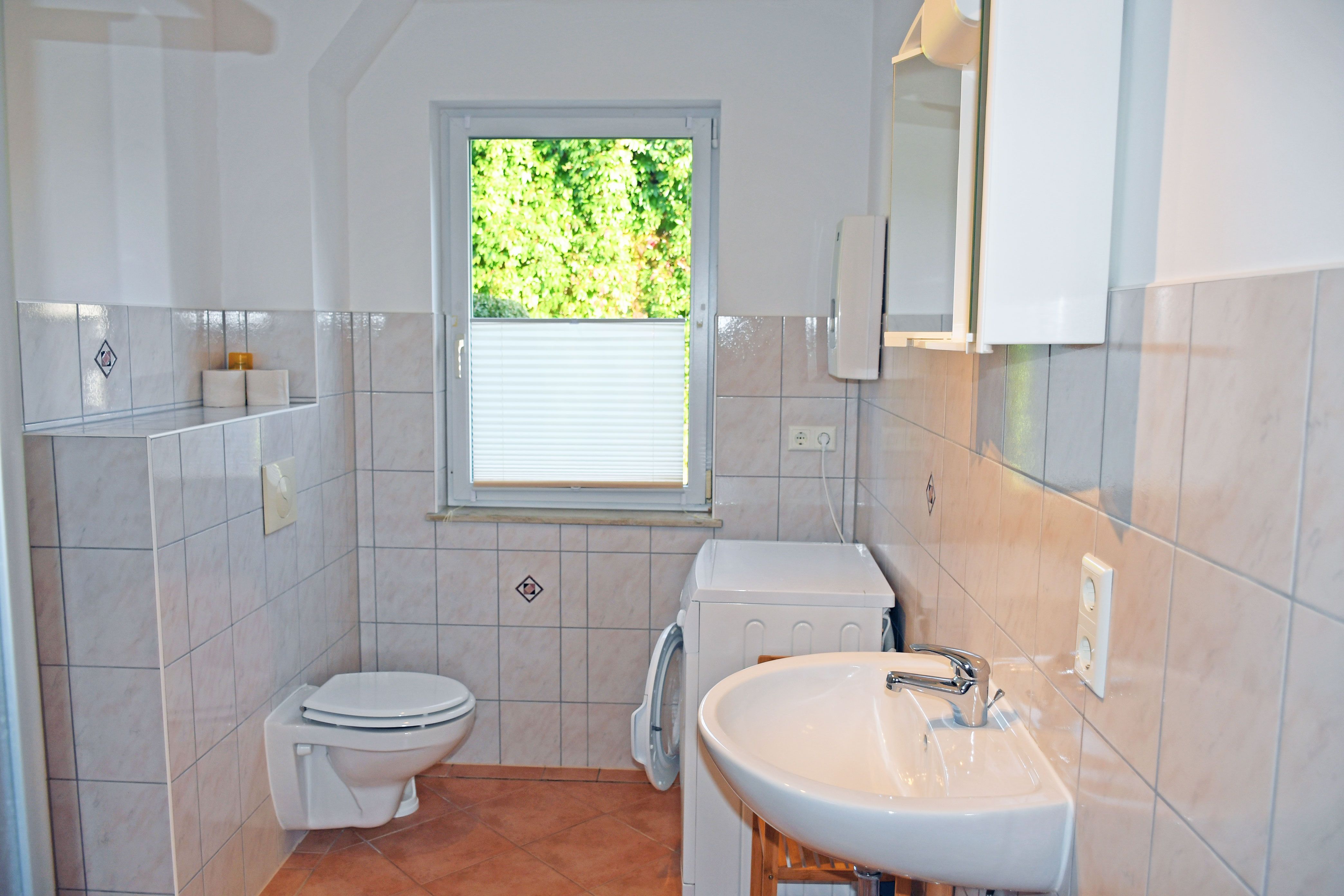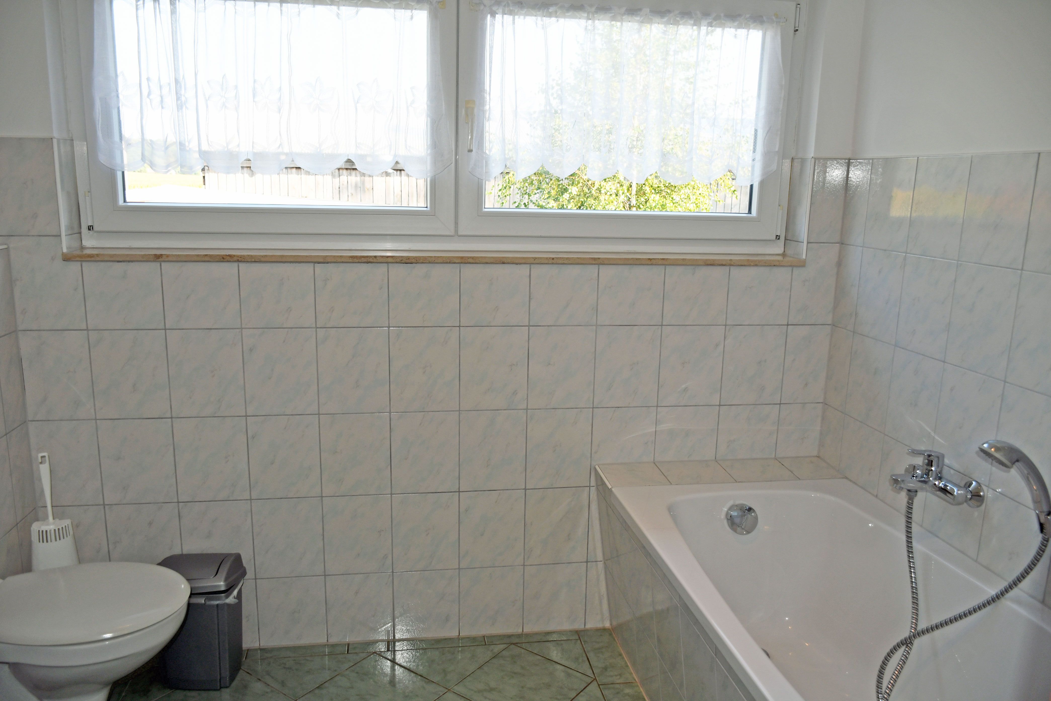 Das im Obergeschoss befindliche zweite Bad ist mit Badewanne, WC und Waschtisch ausgestattet und verfügt ebenfalls über Tageslicht.