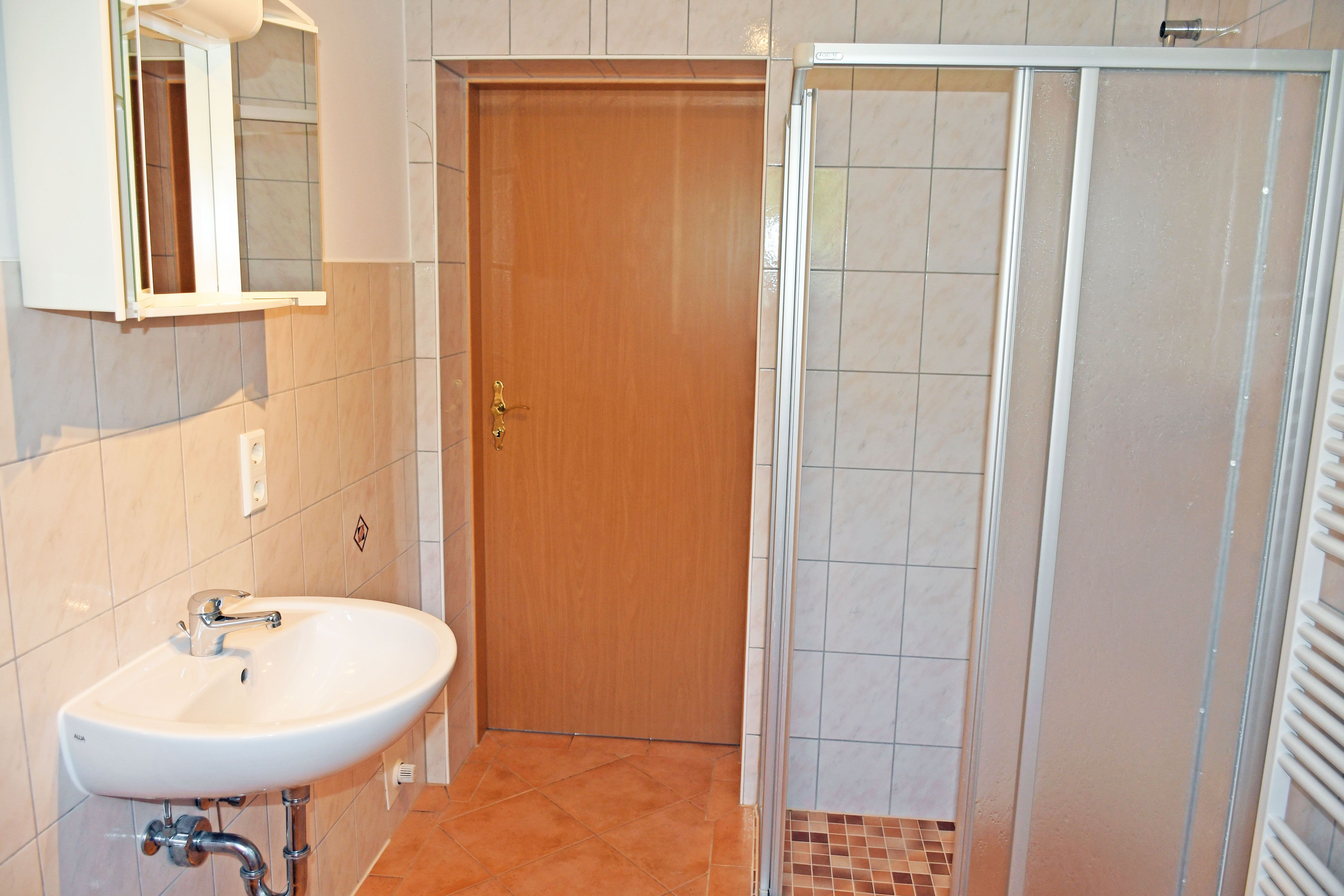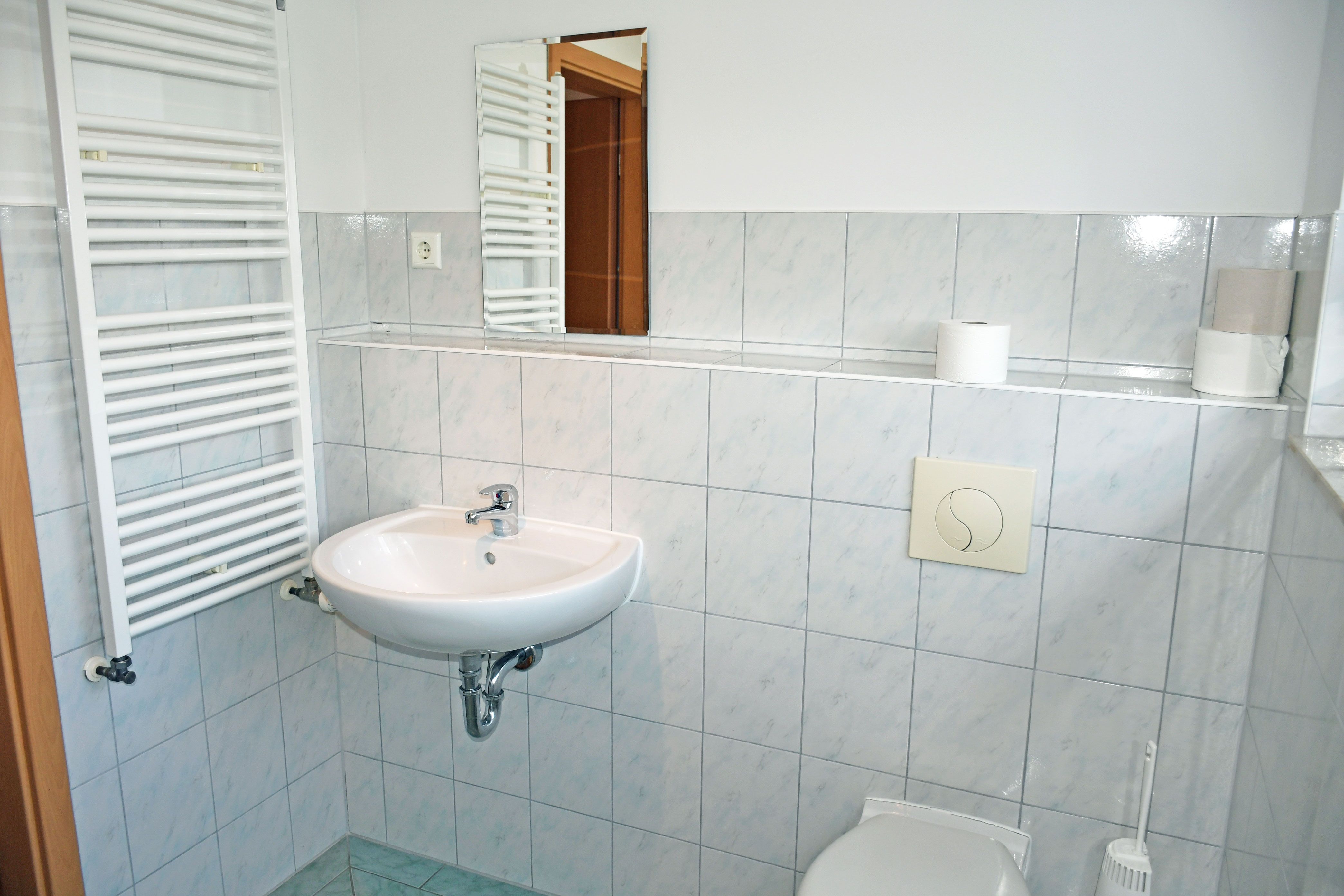 Ebenfalls im Erdgeschoss liegt auch das erste Bad mit Dusche und WC und Tageslicht.