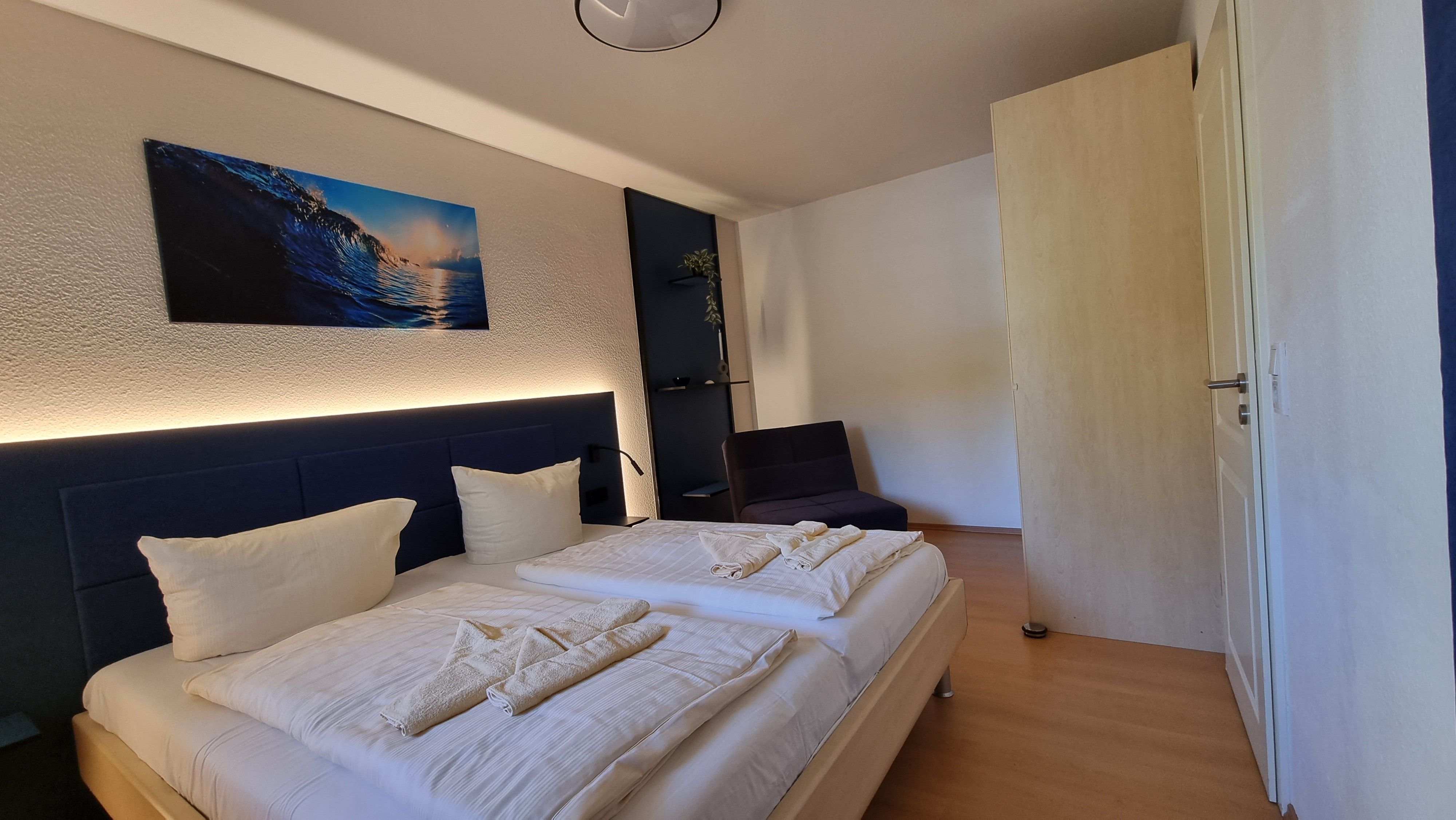Die Wohnung verfügt über ein Schlafzimmer mit Doppelbett undzusätzlichem. Die Wohnung ist ideal geeignet für Familien und Hundeliebhaber.