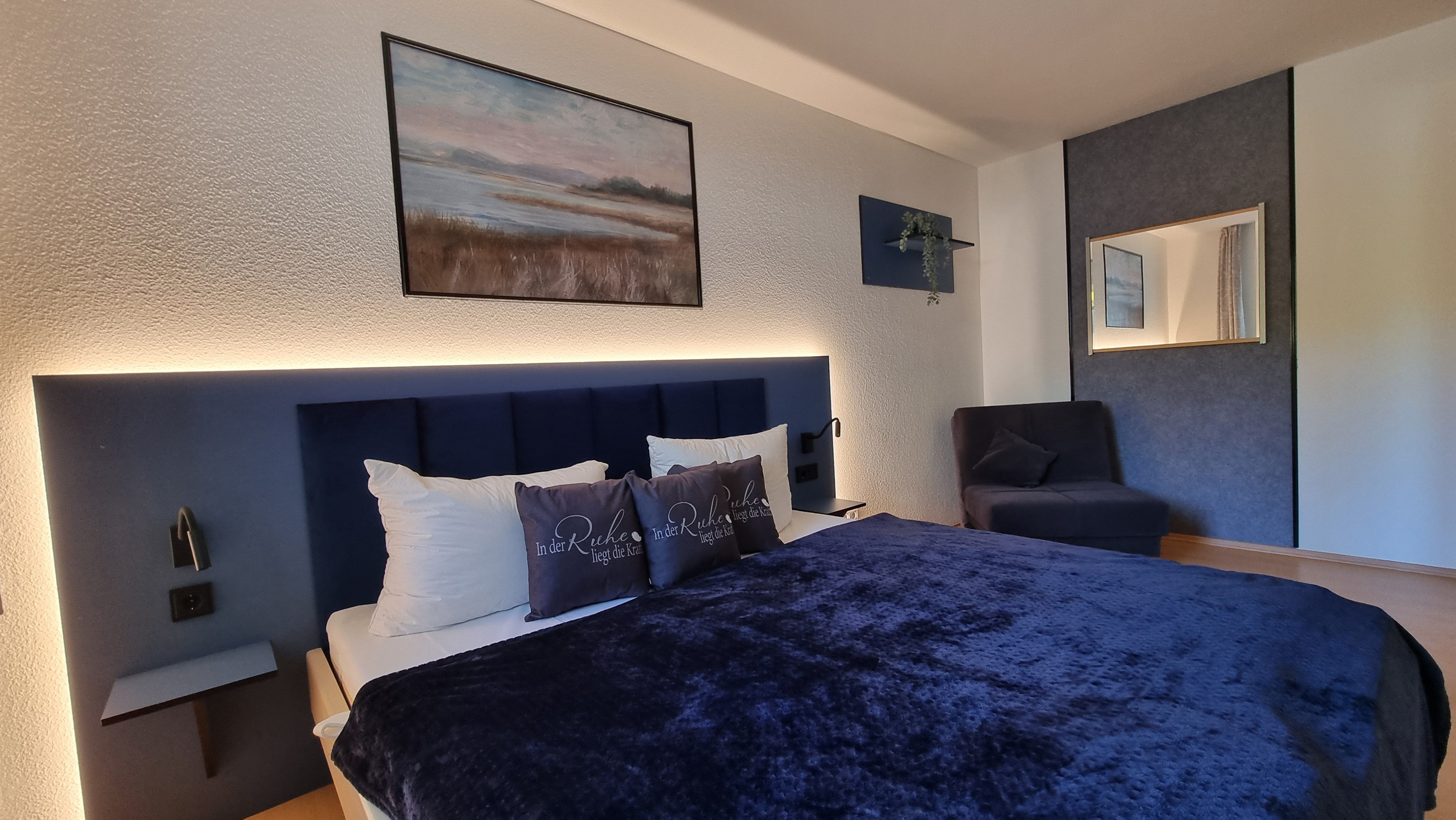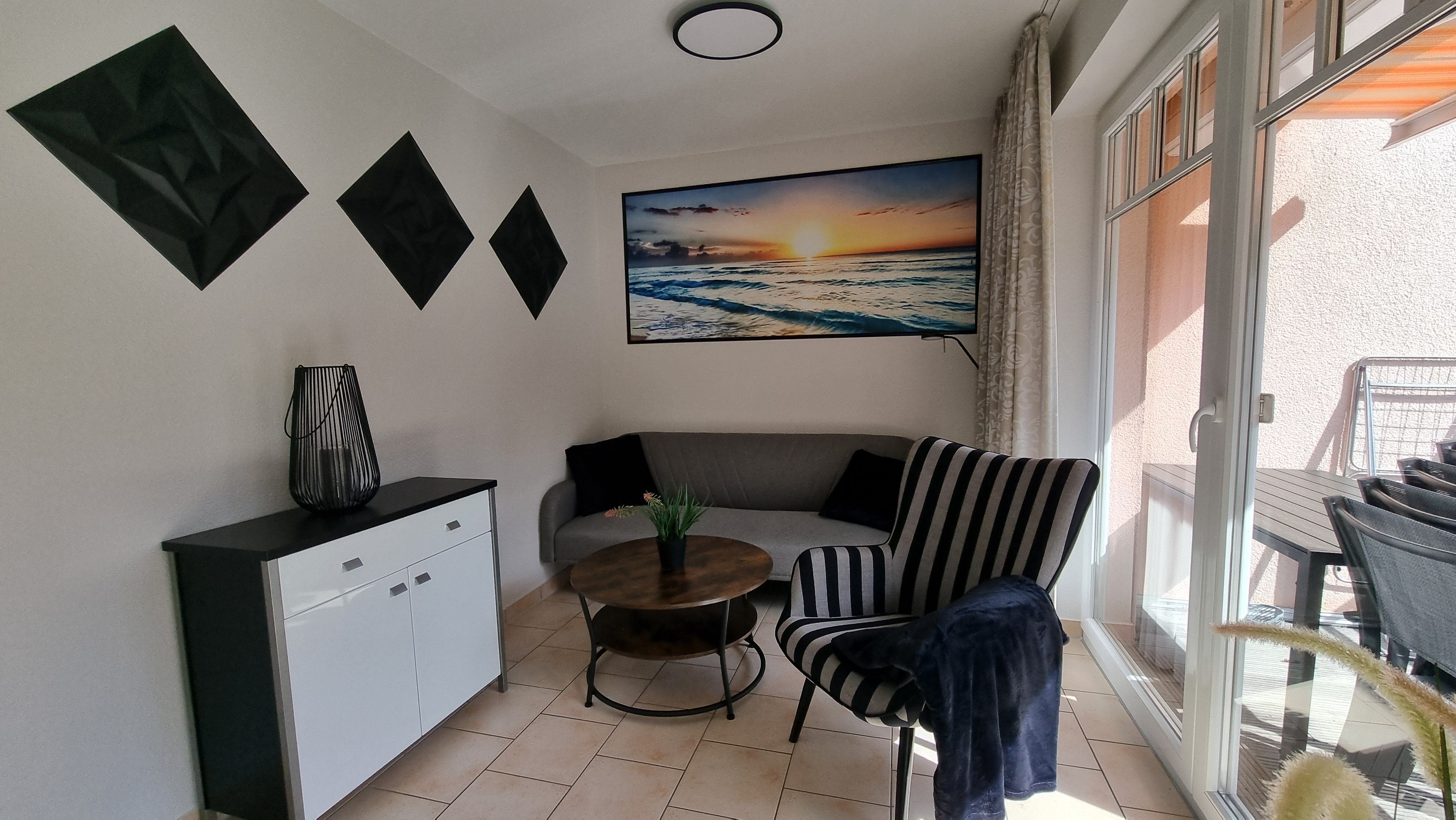 Die Wohnung verfügt über ein Schlafzimmer mit Doppelbett undzusätzlichem. Die Wohnung ist ideal geeignet für Familien und Hundeliebhaber.