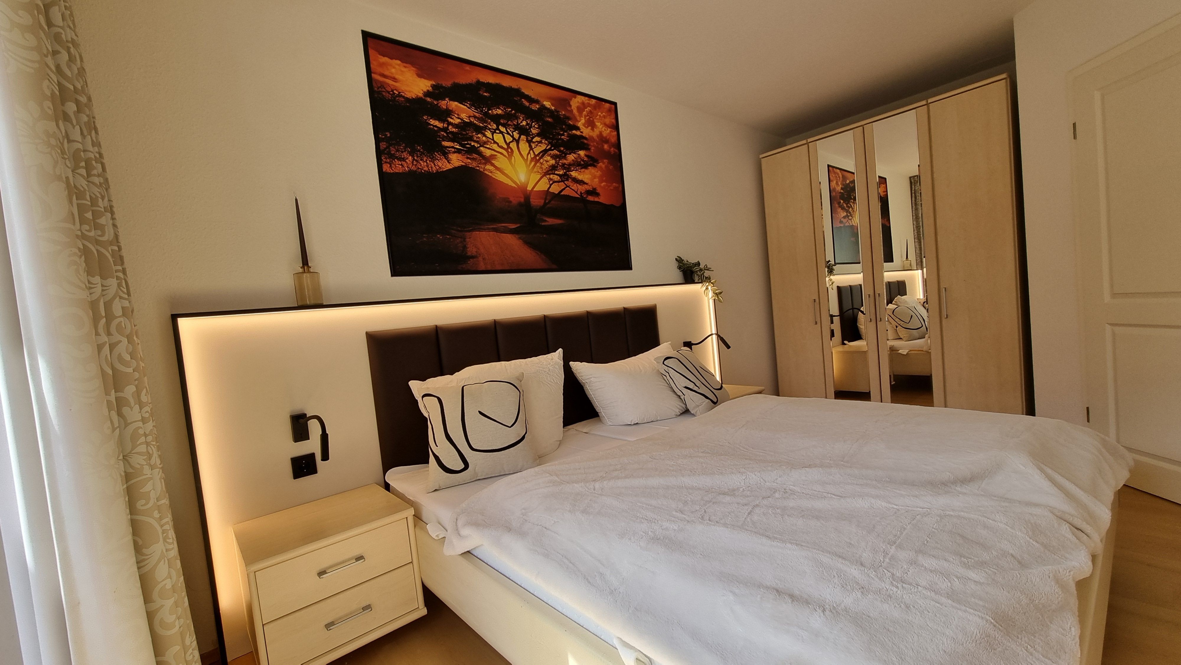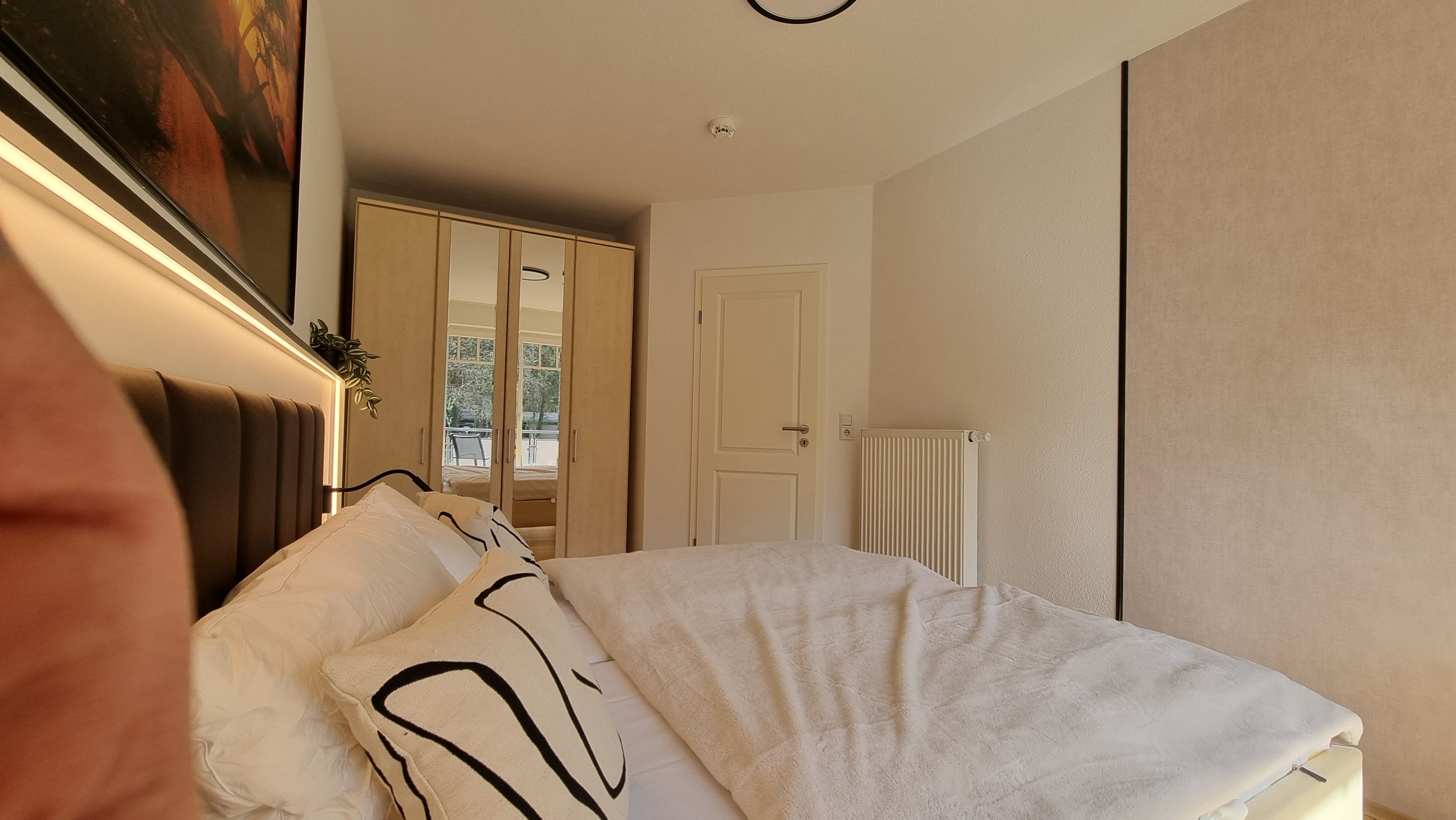 Die Wohnung verfügt über ein Schlafzimmer mit Doppelbett und ein Schlafzimmer mit 2 Einzelbetten. Die Wohnung ist ideal geeignet für Familien und Hundeliebhaber.