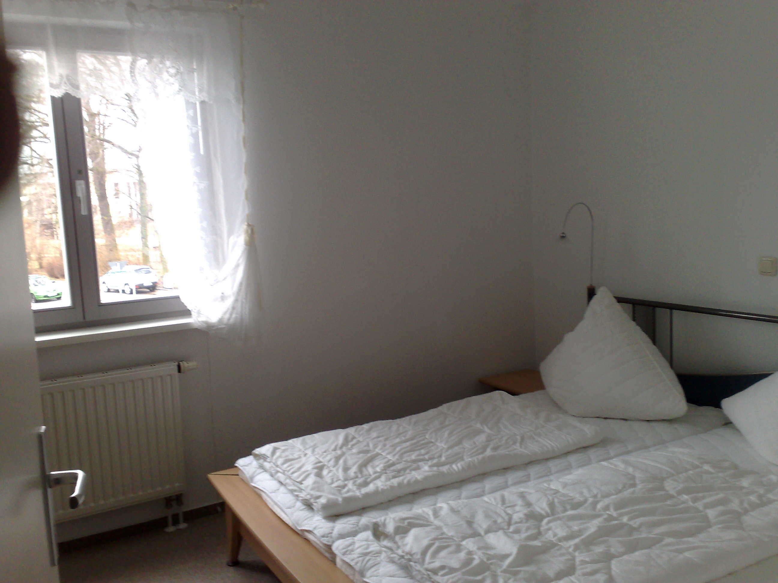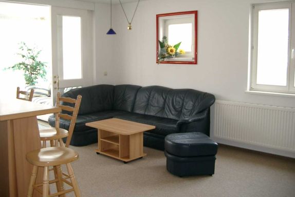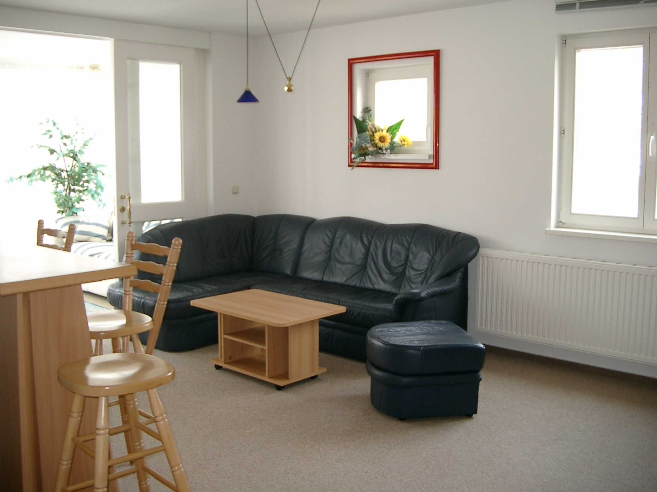 Wohnung 28: Obergeschoßwohnung mit Wintergarten in zentraler Lage, Schlafzimmer und großes, aufbettbares Wohnzimmer als Wohnbereich mit Küche und Essplatz, Badausstattung mit Badewanne mit WC und Waschtisch, Parkplatz vor der Haustür. Haustier zu 12Euro/Nacht erlaubt. Aufbettung ab der 3. Person 5Euro/Nacht.