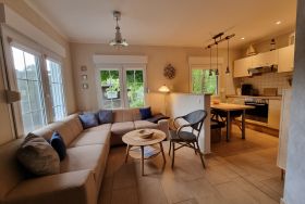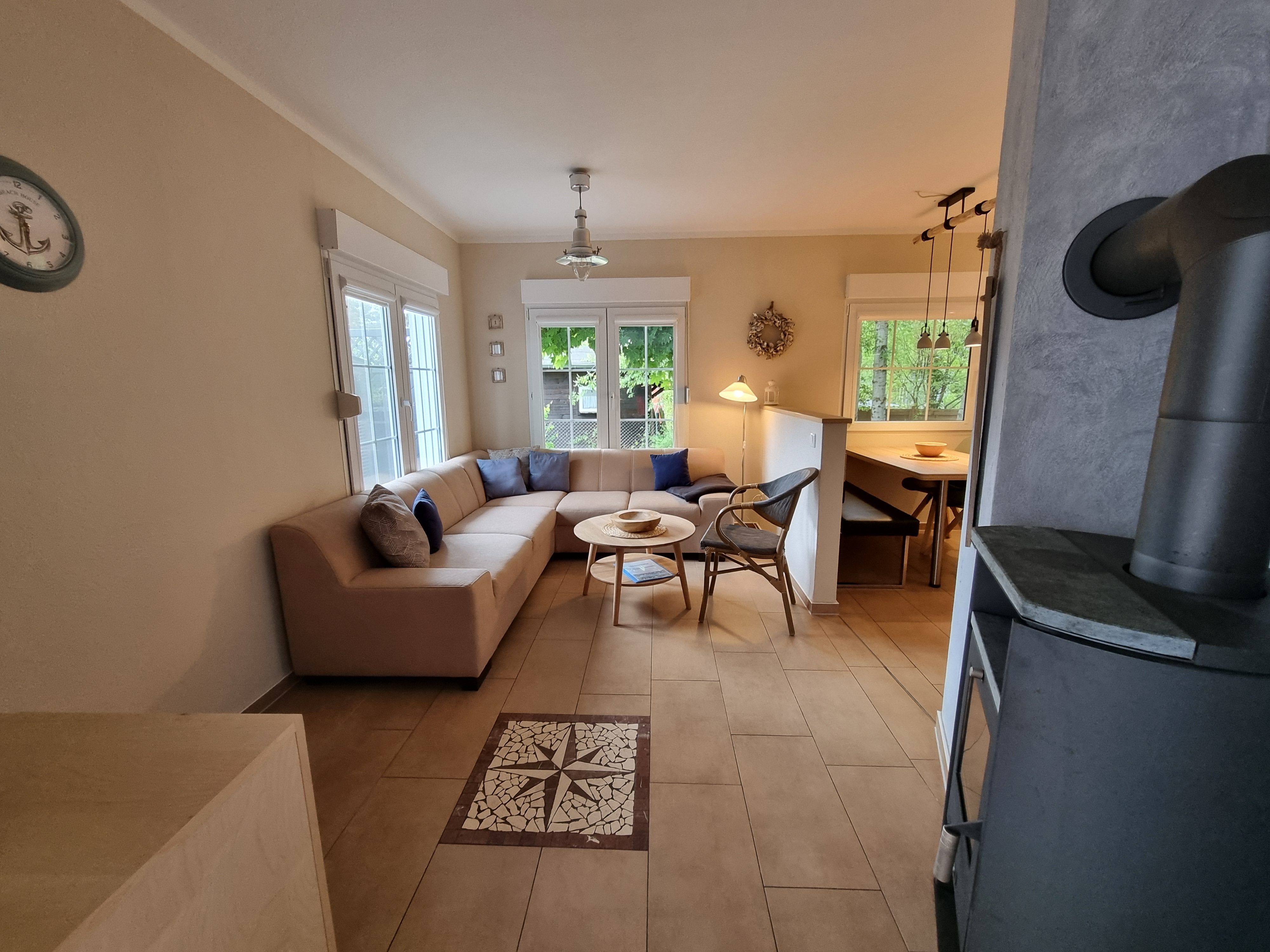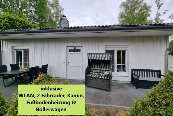 Der Bungalow ist ausgestattet mit 2 separaten Schlafzimmern. Im Wohnbereich befindet sich eine Küchenzeile, ein Esstisch und Sitzmöglichkeiten, ein Kamin und ein TV mit Kabelanschluss. Vom Wohnbereich kommen Sie auf die großzügige möblierte Terrasse inkl. Strandkorb. Der Bungalow liegt sehr ruhig in unserer Ferienanlage in der sich auch ein kleiner Spielplatz befindet.