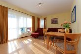 Ferienwohnung für 2-4 Personen (ca. 62 m²) im 1.OG mit Wohn- und Esszimmer, Schlafzimmer, Küche, Bad und 2 Balkone.