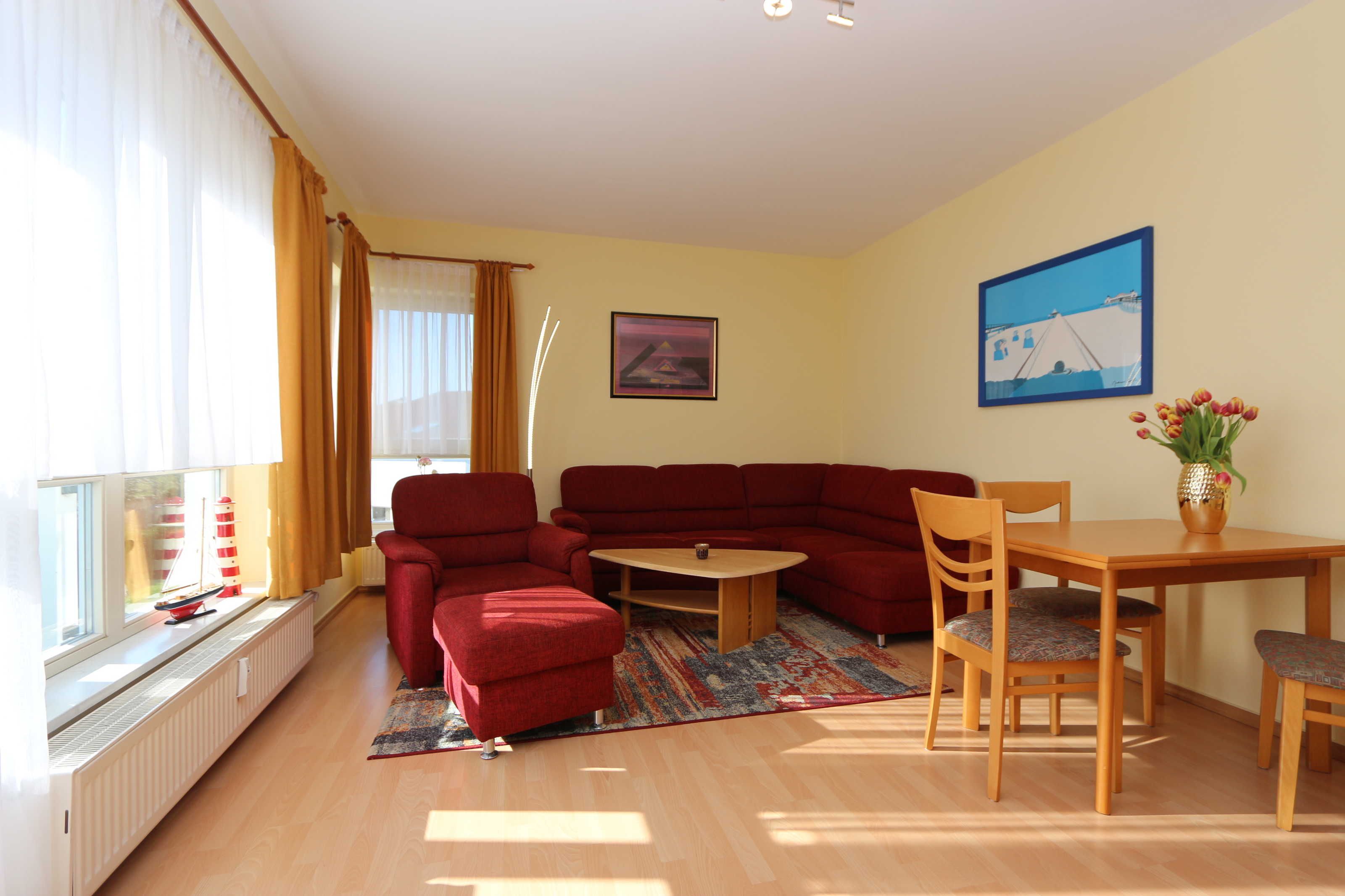 Wir bieten Ihnen hier eine gemütliche 2-Zimmer-Ferienwohnungen (Nr. 22) mit ca. 62 m²  für 2 - 4 Personen in der Wohnanlage Am Strauchelfeld an.