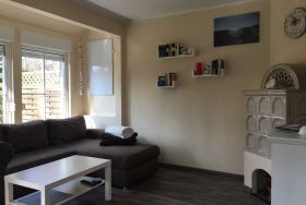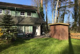 Das geräumig und komfortabel eingerichtete Ferienhaus wird seit 2018 stetig renoviert und sich über zwei Etagen. Im EG befinden sich neben dem Bad mit Dusche, Waschmaschine und WC auch Küche sowie Wohn-/Essbereich und im 1. OG die beiden Schlafzimmer sowie ein weiteres WC. Das Wohn- und Esszimmer erreicht man vom Flur aus über die moderne Küche. Im Wohnbereich sorgt ein Elektro-Kamin in der kälteren Jahreszeit für wohlige Wärme. Vor dem Essbereich lädt die Terrasse, die mit Gartenmöbeln ausgestattet ist, zur Erholung ein. Außerdem gehören zum Ferienhaus ein Abstellschuppen und ein PKW-Stellplatz.