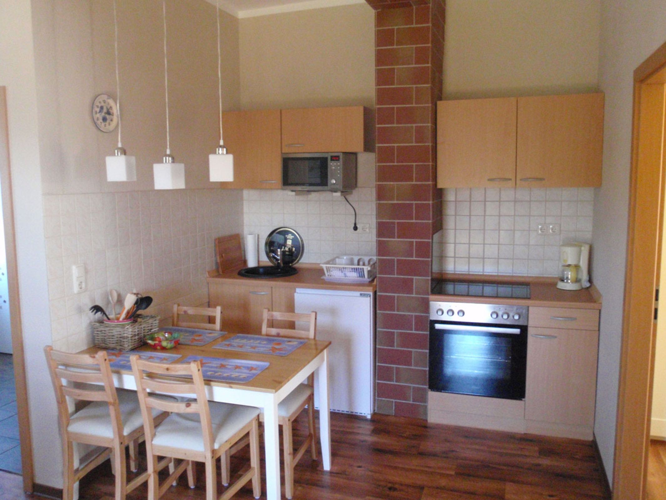 • Die Küche ist mit einem Essplatz mit 4 Stühlen,einem Backofen , Cerankochfeld und einer Mikrowelle ausgestattet.