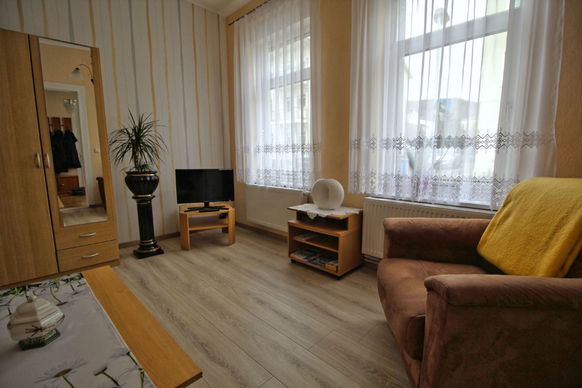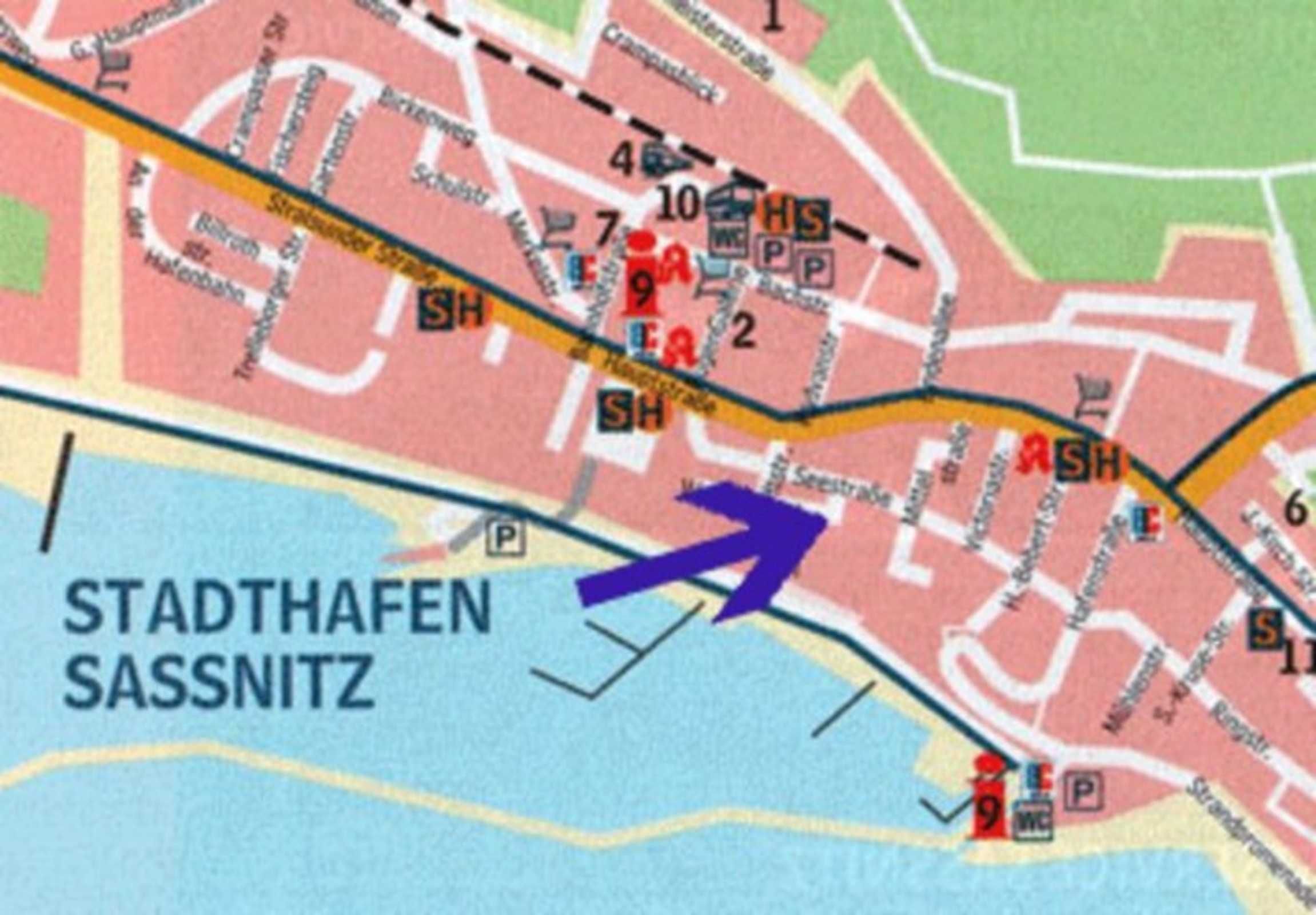 Die Ferienwohnung befindet sich im Erdgeschoß eines Einfamilienhauses in zentraler Lage, in der Nähe des Stadthafens, ca. 1 km vom Bahnhof und Busbahnhof entfernt. Sassnitz ist ein Staatlich anerkannter Erholungsort und daher kurabgabepflichtig.
