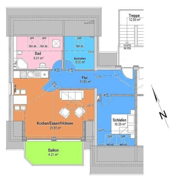 • Wohnzimmer mit off. Küche, Eßtisch, Couch