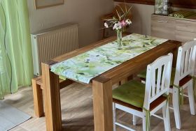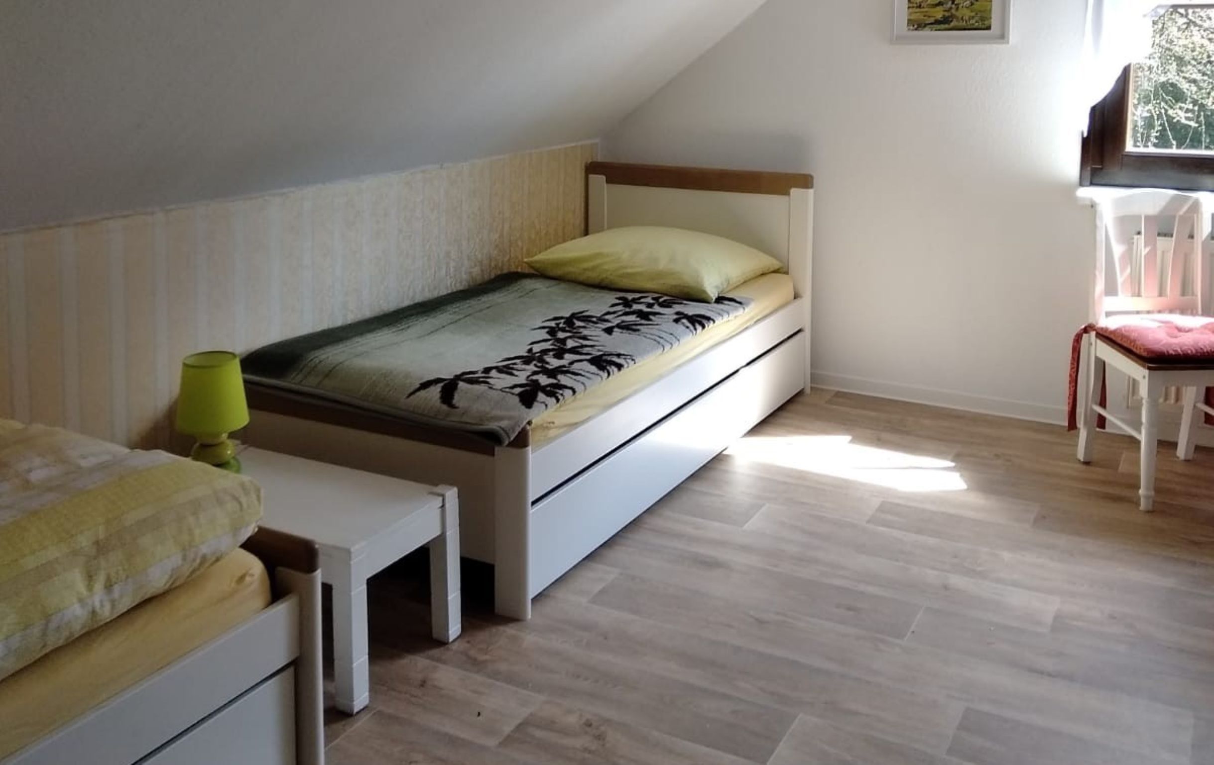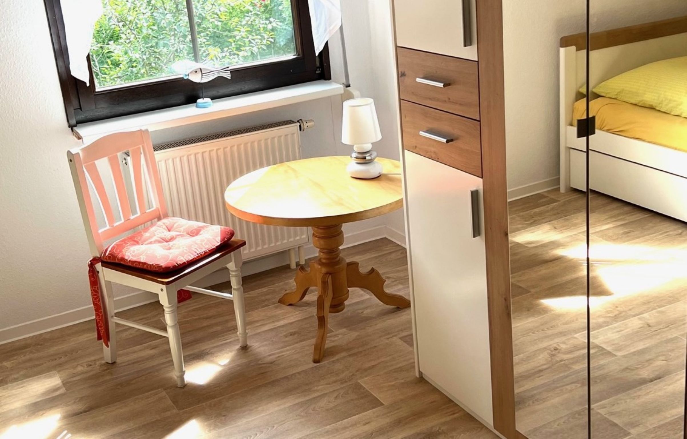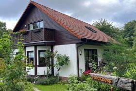 Die Ferienwohnung Stockrose befindet sich im Obergeschoss eines Einfamilienhauses in ländlicher Lage.