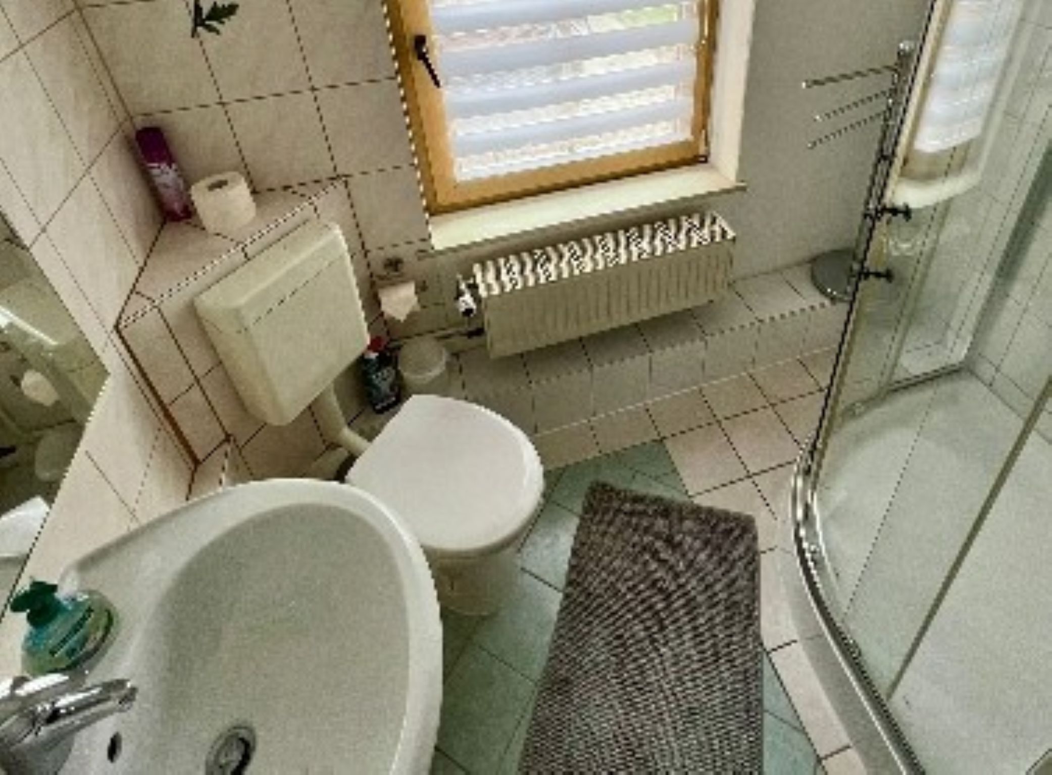- Das Bad verfügt über eine Dusche, Waschtisch, Föhn und Toilette.