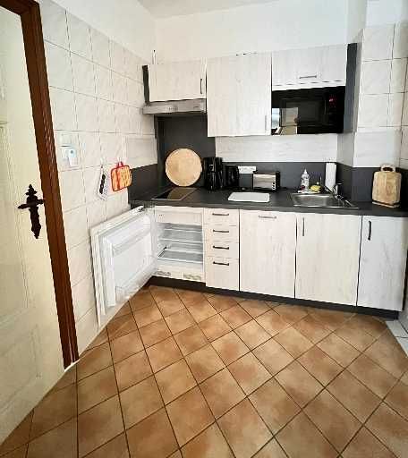 - Die kleine separate Küchenzeile befindet sich im Eingangsbereich und ist wie folgt ausgestattet: Zweiplatten - Cerankochfeld, Mikrowelle, Geschirrspüler, Kühlschrank mit Gefrierfach.